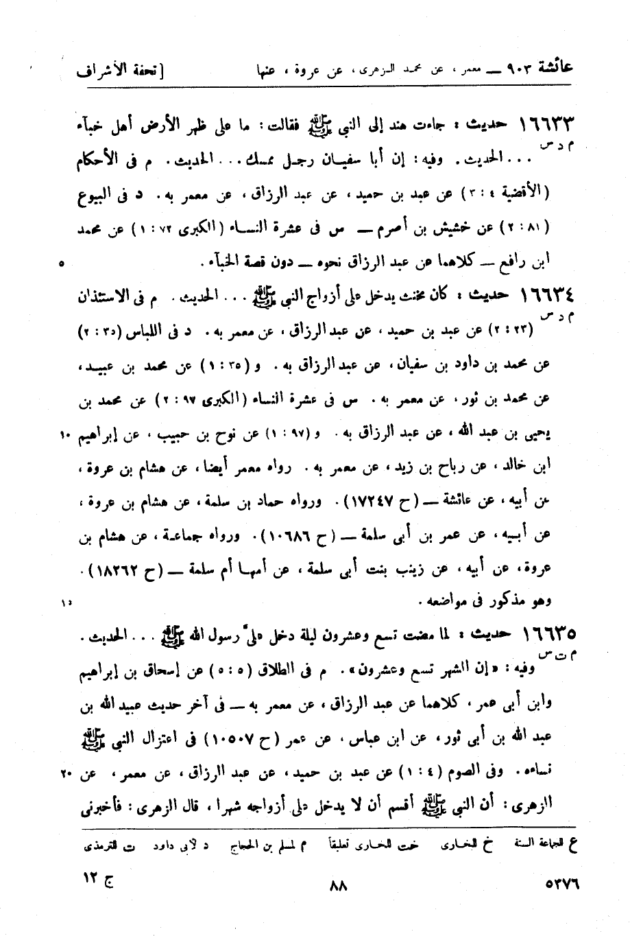 م في الطلاق (5: 5) عن إسحاق بن إبراهيم وابن أبي عمر، كلاهما عن عبد الرزاق، عن معمر به - في آخر حديث عبيد الله بن عبد الله بن أبي ثور، عن ابن عباس، عن عمر (ح 10507) في اعتزال النبي صَلَّى اللَّهُ عَلَيْهِ وَسَلَّمَ نساءه. وفي الصوم (4: 1) عن عبد بن حميد، عن عبد الرزاق، عن معمر، عن الزهري: أن النبي صَلَّى اللَّهُ عَلَيْهِ وَسَلَّمَ أقسم أن لا يدخل على أزواجه شهراً، قال الزهري: فأخبرني -[89]- عروة، عن عائشة، قالت: لما مضت تسع وعشرون ليلة دخل عليَّ النبيّ صَلَّى اللَّهُ عَلَيْهِ وَسَلَّمَ ... فذكر نحوه.