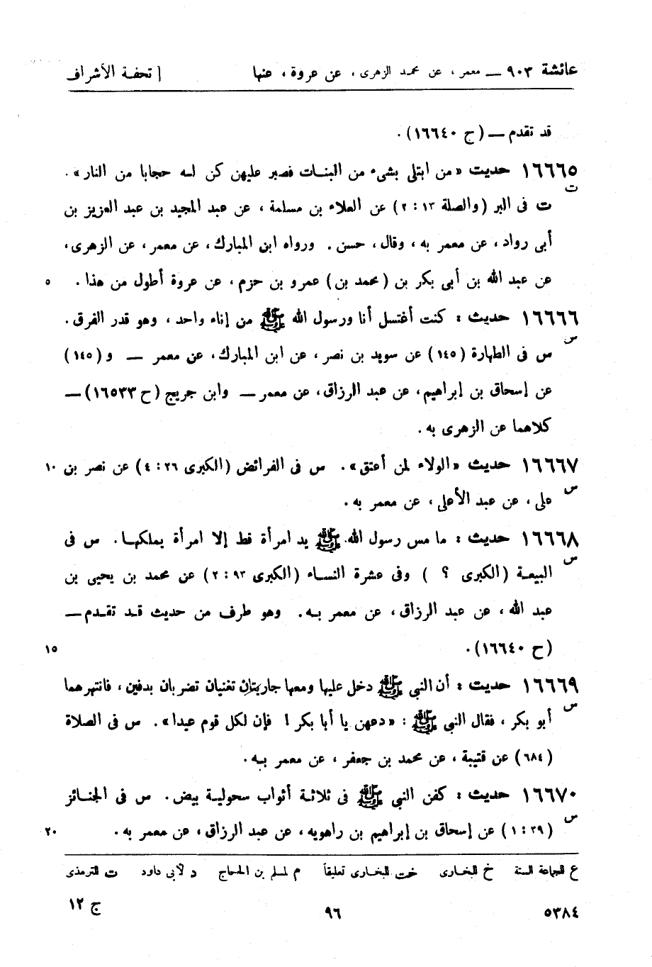 ت في البر (والصلة 13: 2) عن العلاء بن مسلمة، عن عبد المجيد بن عبد العزيز بن أبي رواد، عن معمر به، وقال، حسن. ورواه ابن المبارك، عن معمر، عن الزهري، عن عبد الله بن أبي بكر بن (محمد بن) عمرو بن حزم، عن عروة أطول من هذا.