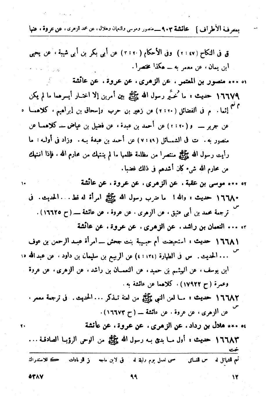 16682 -[س] حديث: ما لعن النبي صَلَّى اللَّهُ عَلَيْهِ وَسَلَّمَ من لعنة تذكر.. الحديث. في ترجمة معمر، عن الزهري، عن عروة، عن عائشة - (ح 16673) .