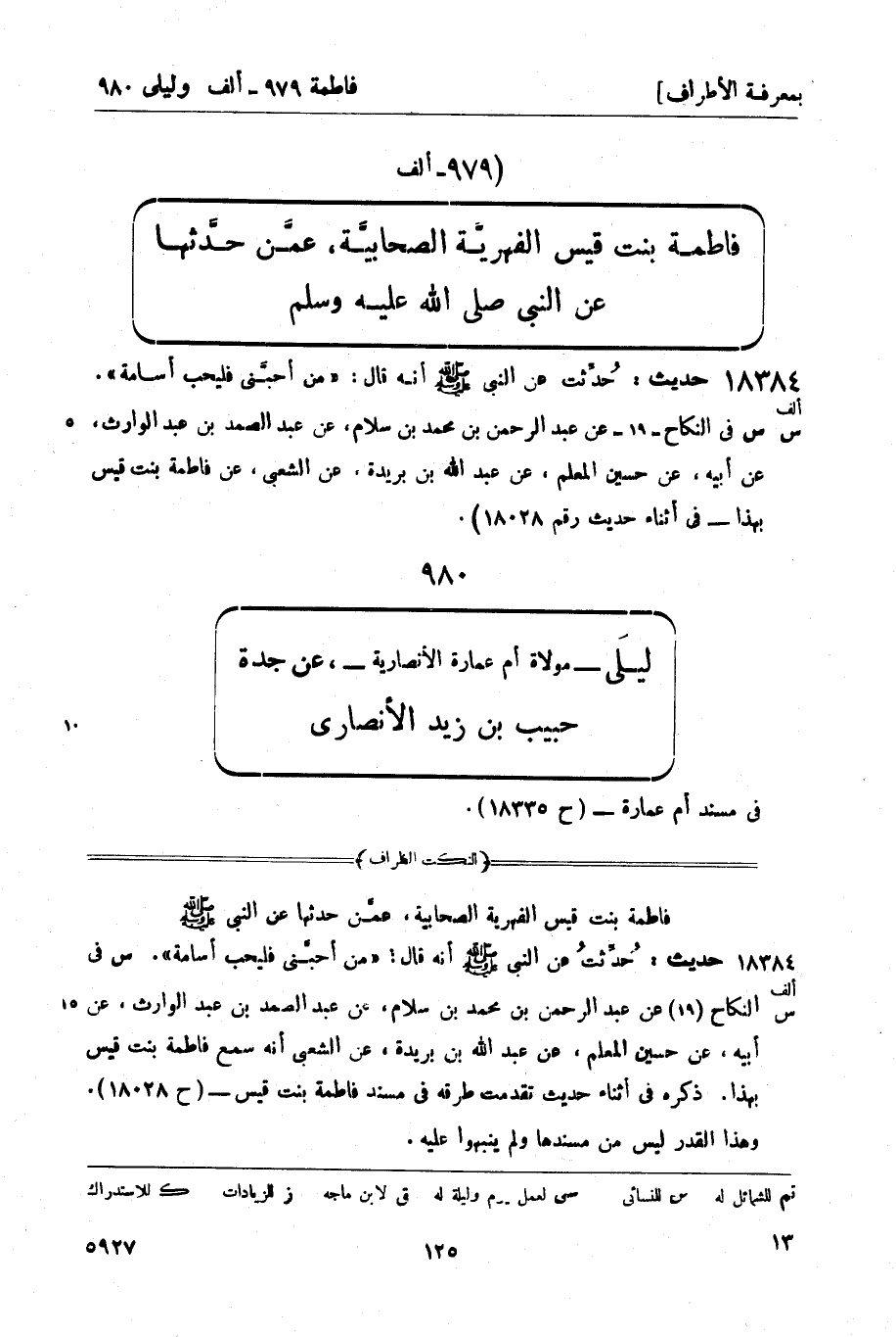 (979 - ألف فاطمة بنت قيس الفهريَّة الصحابيَّة، عمَّن حدَّثها عن النبي صَلَّى اللَّهُ عَلَيْهِ وَسَلَّمَ