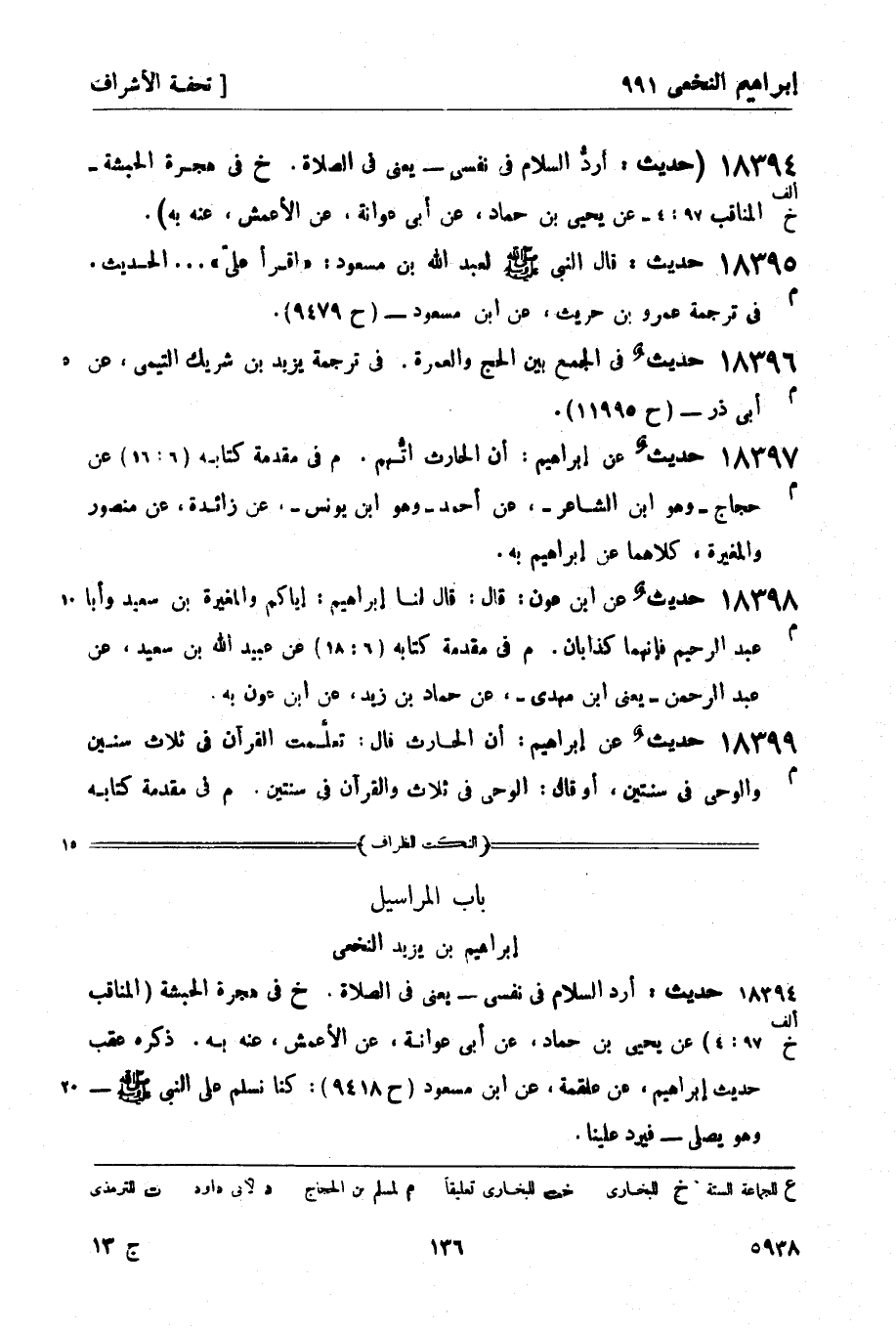 18394 - (ألف خ) (حديث: أرد السلام في نفسي - يعني في الصلاة. (خ) في هجرة الحبشة - المناقب 97: 4 - عن يحيى بن حماد، عن أبي عوانة، عن الأعمش، عنه به) .