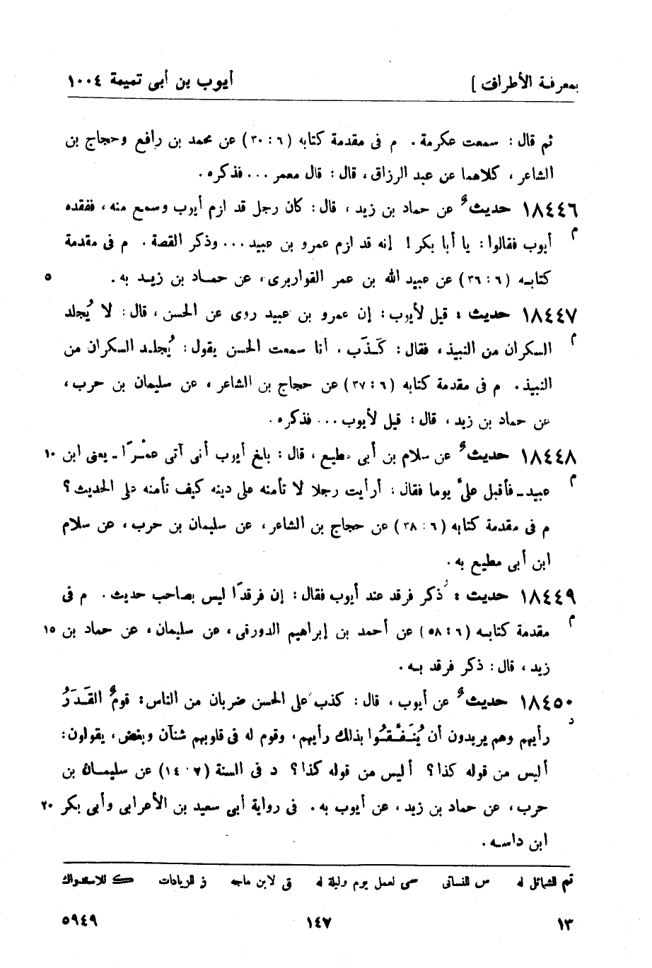 18446 -[م] حديث عن حماد بن زيد، قال: كان رجل قد لزم أيوب وسمع منه، ففقده أيوب فقالوا: يا أبا بكر! إنه قد لزم عمرو بن عبيد ... وذكر القصة. (م) في مقدمة كتابه (6: 36) عن عبيد الله بن عمر القواريري، عن حماد بن زيد به.
