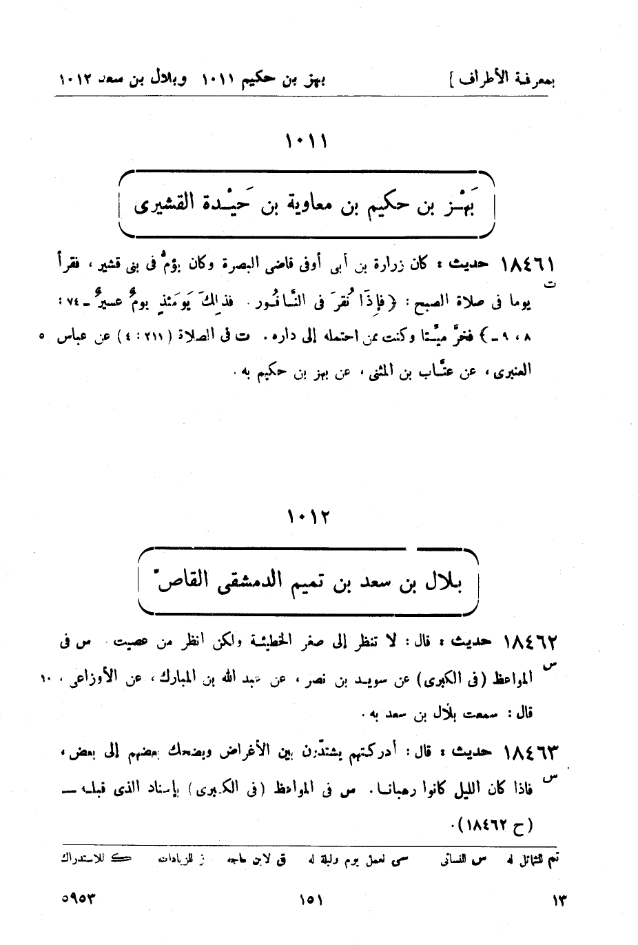 18461 -[ت] حديث: كان زرارة بن أبي أوفى قاضي البصرة وكان يؤم في بني قشير، فقرأ يوما في صلاة الصبح: فإذا نقر في الناقور فذلك يومئذ يوم عسير (74: 8، 9) فخر ميتا وكنت ممن احتمله إلى داره. (ت) في الصلاة (211: 4) عن عباس العنبري، عن عتاب بن المثنى، عن بهز بن حكيم به.