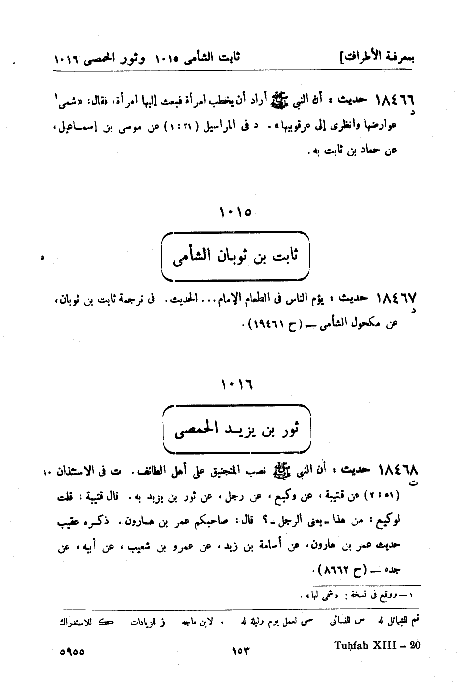 18467 -[د] حديث: يؤم الناس في الطعام الإمام ... الحديث. في ترجمة ثابت بن ثوبان، عن مكحول الشأمي - (ح 19461) .