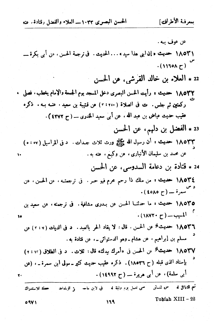 18532 -[ت] حديث: رأيت الحسن البصري دخل المسجد يوم الجمعة والإمام يخطب، فصلى ركعتين ثم جلس. (ت) في الصلاة (250: 3) عن قتيبة بن سعيد، عنه به. ذكره عقيب حديث عياض بن عبد الله، عن أبي سعيد الخدري - (ح 4272) .