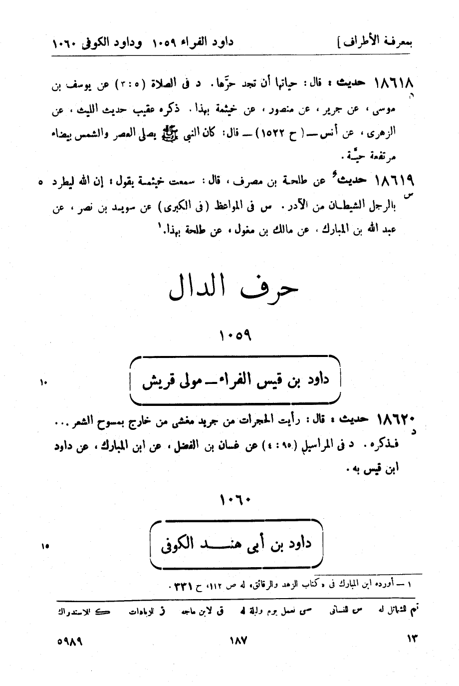 18620 -[د] حديث: قال: رأيت الحجرات من جريد مغشى من خارج بمسوح الشعر ... فذكره. (د) في المراسيل (95: 4) عن غسان بن الفضل، عن ابن المبارك، عن داود بن قيس به.