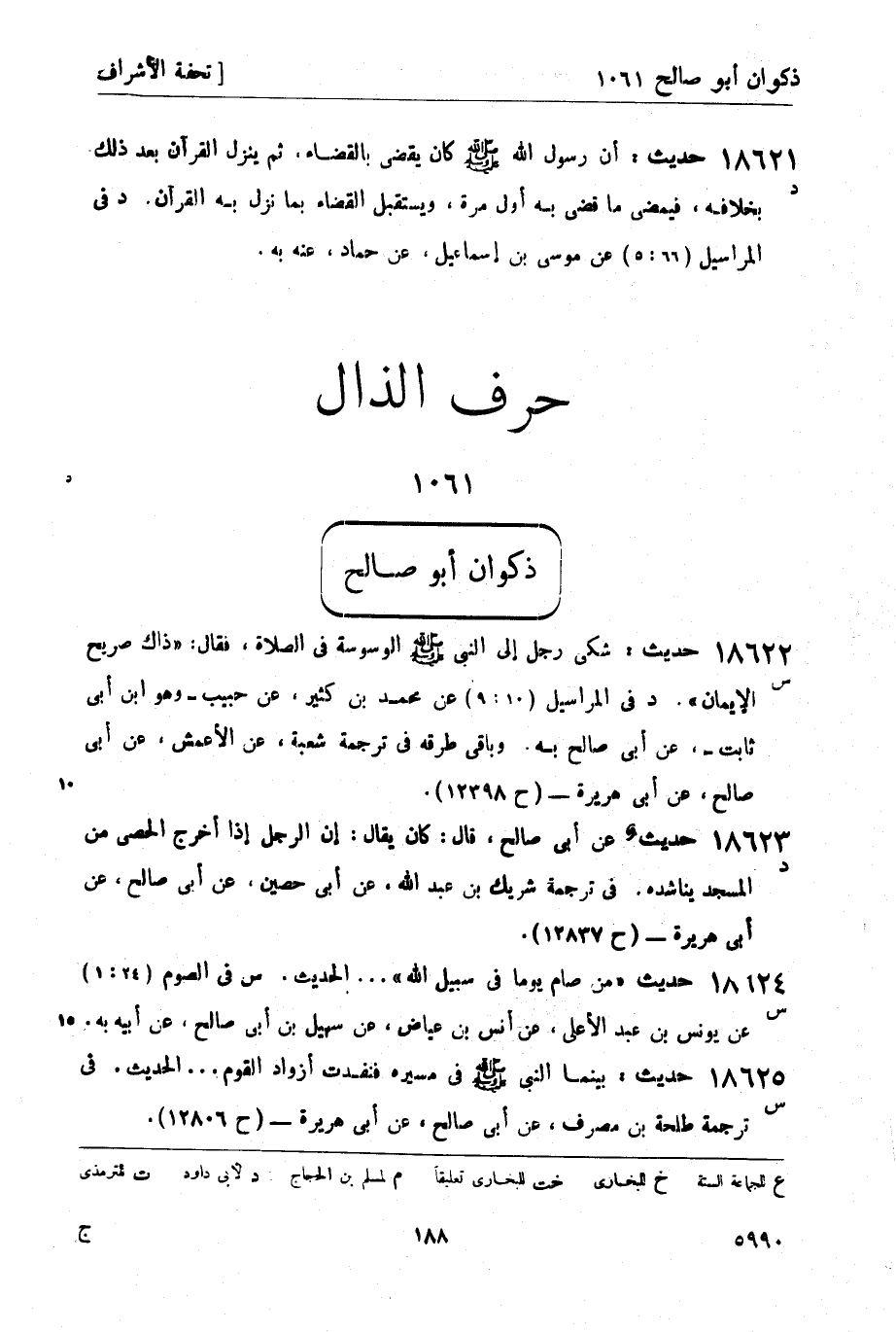 18625 -[س] حديث: بينما النبي صَلَّى اللَّهُ عَلَيْهِ وَسَلَّمَ في مسيره فنفدت أزواد القوم ... الحديث. في ترجمة طلحة بن مصرف، عن أبي صالح، عن أبي هريرة - (ح 12806) .