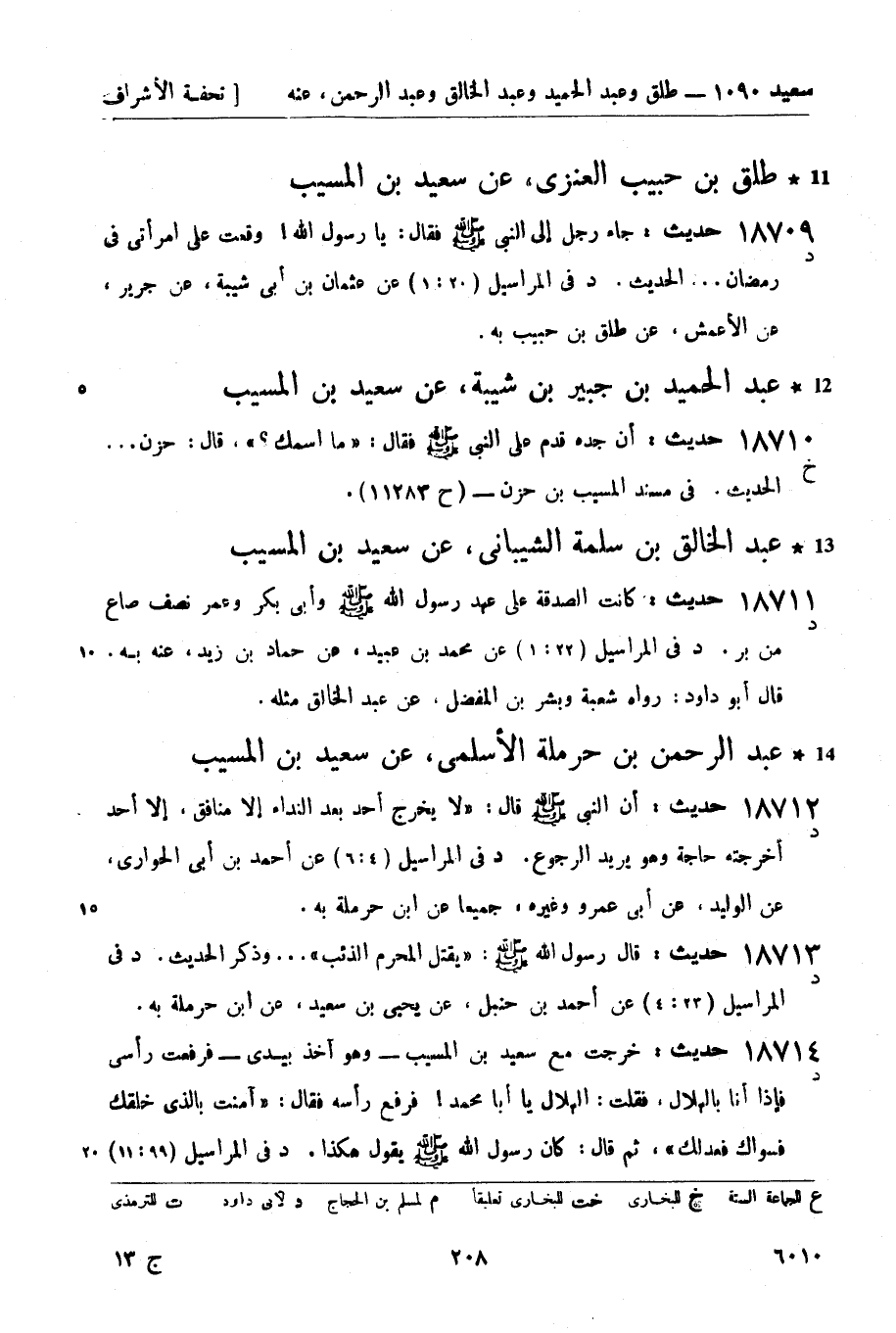 18711 -[د] حديث: كانت الصدقة على عهد رسول الله صَلَّى اللَّهُ عَلَيْهِ وَسَلَّمَ وأبي بكر وعمر نصف صاع من بر. (د) في المراسيل (22: 1) عن محمد بن عبيد، عن حماد بن زيد، عنه به. قال أبو داود: رواه شعبة وبشر بن المفضل، عن عبد الخالق مثله.