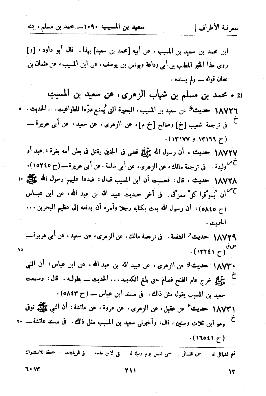 18726 -[خ] حديث عن سعيد بن المسيب، البحيرة التي يمنع درها للطواغيت ... الحديث. في ترجمة شعيب [خ] وصالح [خ م] ، عن الزهري، عن سعيد، عن أبي هريرة - (ح 13166 و13177) .