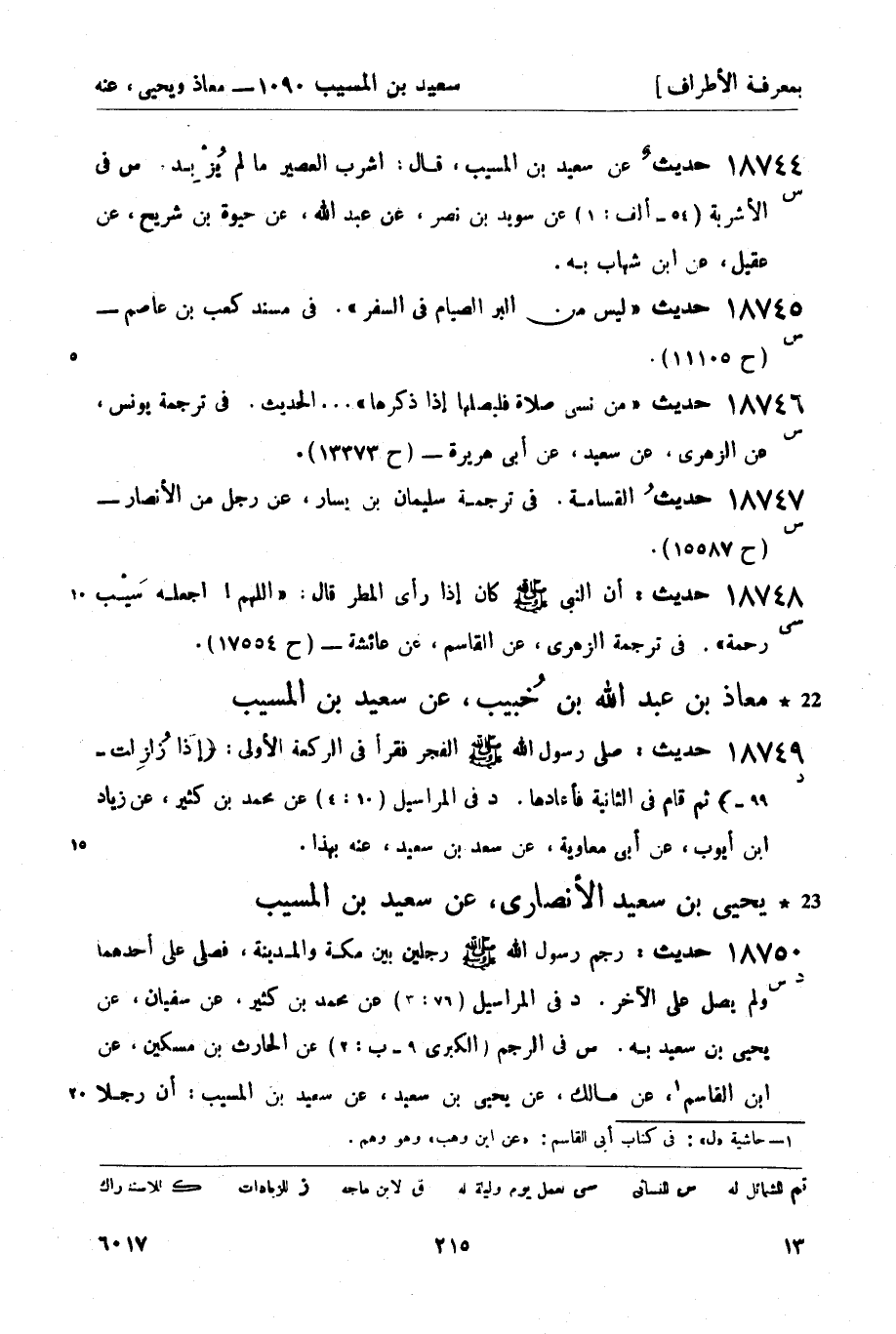 س في الرجم (الكبرى 9 - ب: 2) عن الحارث بن مسكين، عن ابن القاسم1، عن مالك، عن يحيى بن سعيد، عن سعيد بن المسيب: أن رجلا -[216]- كان من أسلم جاء إلى أبي بكر الصديق فقال له: إن الآخر زنى، فقال له أبو بكر: هل ذكرت ذلك لأحد غيري؟ قال: لا، فذكره الحديث، فأتى عمر فقال له مثل ما قال لأبي بكر، فقال له عمر مثل ما قال له أبو بكر، فأتى رسول الله صَلَّى اللَّهُ عَلَيْهِ وَسَلَّمَ ... الحديث. و (9 - ب: 3) عن الحسين بن منصور، عن عبد الله بن نمير، عن يحيى بن سعيد نحوه. و (9 - ب: 4) عن الحسين بن منصور، عن ابن نمير، قال: [حدث] نا يحيى بن سعيد، عن سعيد بن المسيب، عن رجل آخر من أسلم ذكر1 لرسول الله صَلَّى اللَّهُ عَلَيْهِ وَسَلَّمَ أنه زنى فأمر به رسول الله صَلَّى اللَّهُ عَلَيْهِ وَسَلَّمَ فرجم، فذكر سعيد أن رسول الله صَلَّى اللَّهُ عَلَيْهِ وَسَلَّمَ صلى على أحدهما. ذكره أبو القاسم في ترجمة الزهري، عن سعيد، عن أبي هريرة في المعرفات. ورواه غير واحد عن الزهري، عن أبي سلمة، عن جابر - (ح 3149) .
