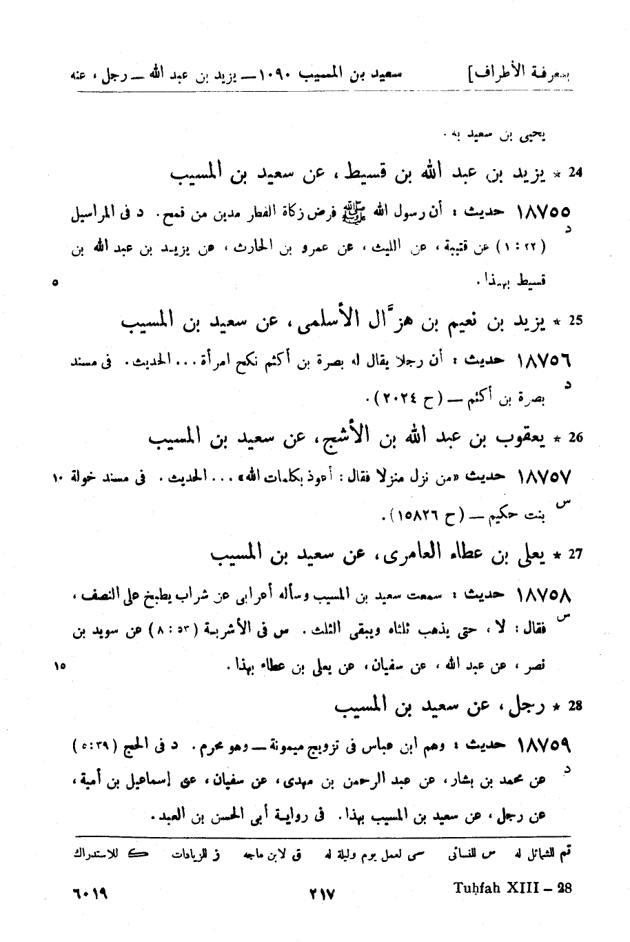 يزيد بن نعيم بن هزال الأسلمي، عن سعيد بن المسيب