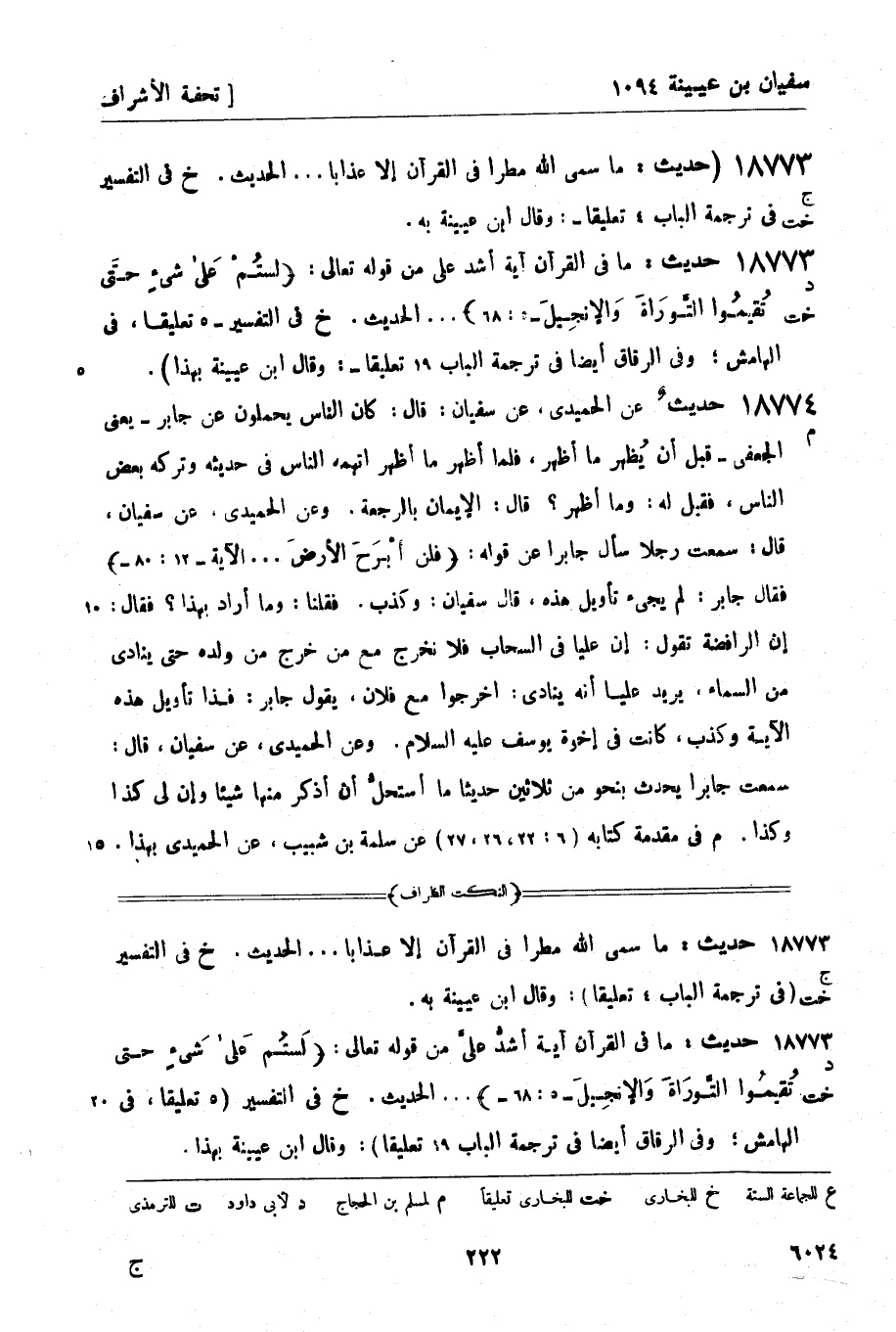 18773 - (ج خت) (حديث: ما سمى الله مطرا في القرآن إلا عذابا ... الحديث. (خ) في التفسير في ترجمة الباب (4 تعليقا) -: وقال ابن عيينة به.