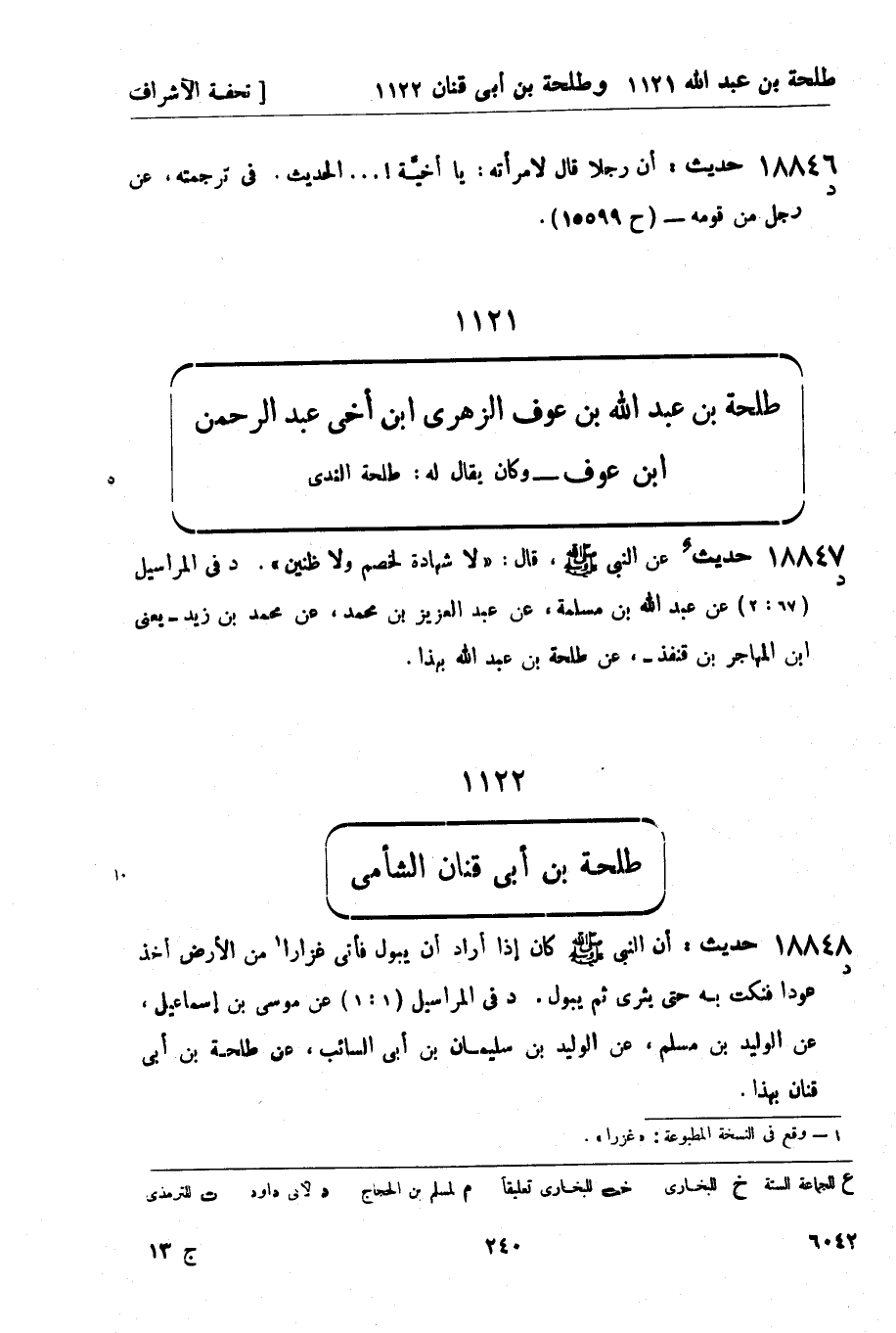18847 -[د] حديث عن النبي صَلَّى اللَّهُ عَلَيْهِ وَسَلَّمَ، قال: لا شهادة لخصم ولا ظنين. (د) في المراسيل (67: 2) عن عبد الله بن مسلمة، عن عبد العزيز بن محمد، عن محمد بن زيد - يعني ابن المهاجر بن قنفذ -، عن طلحة بن عبد الله بهذا.