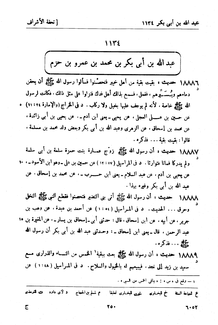 18889 -[د] حديث: أن رسول الله صَلَّى اللَّهُ عَلَيْهِ وَسَلَّمَ بعث ببقية1 الخمس من النساء والذراري مع سعيد بن زيد إلى نجد، فيبيعهم له بالخيول والسلاح. (د) في المراسيل (48: 1) عن -[251]- هناد، عن ابن المبارك، عن محمد بن إسحاق، عن عبد الله بن أبي بكر بهذا. قال أبو داود: وذكر هذا في عقب غزاة قريظة.