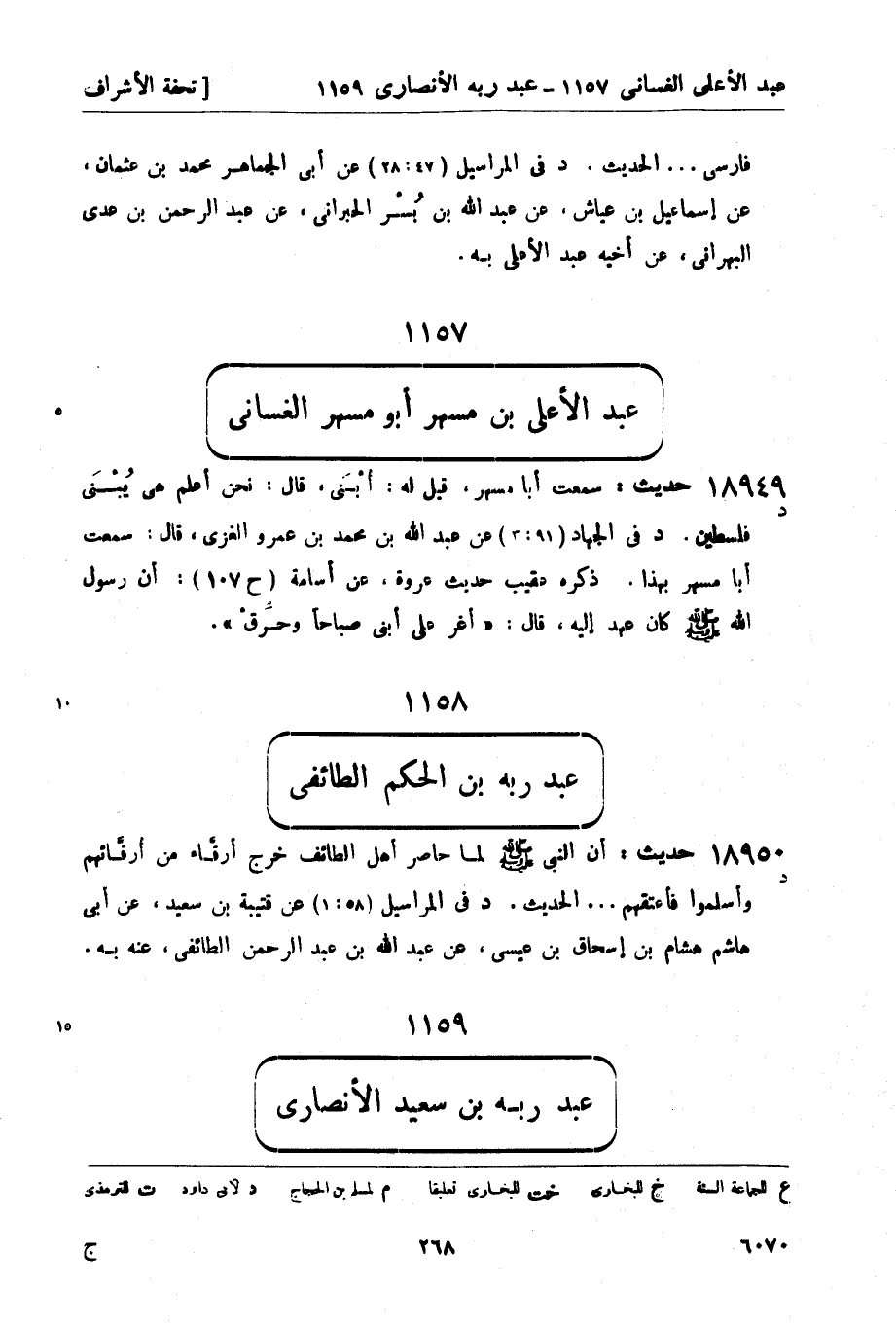 18949 -[د] حديث: سمعت أبا مسهر، قيل له: أبني، قال: نحن أعلم هي يبني فلسطين. (د) في الجهاد (91: 3) عن عبد الله بن محمد بن عمرو الغزي، قال: سمعت أبا مسهر بهذا. ذكره عقيب حديث عروة، عن أسامة (ح 107) : أن رسول الله صَلَّى اللَّهُ عَلَيْهِ وَسَلَّمَ كان عهد إليه، قال: أغر على أبني صباحا وحرق.