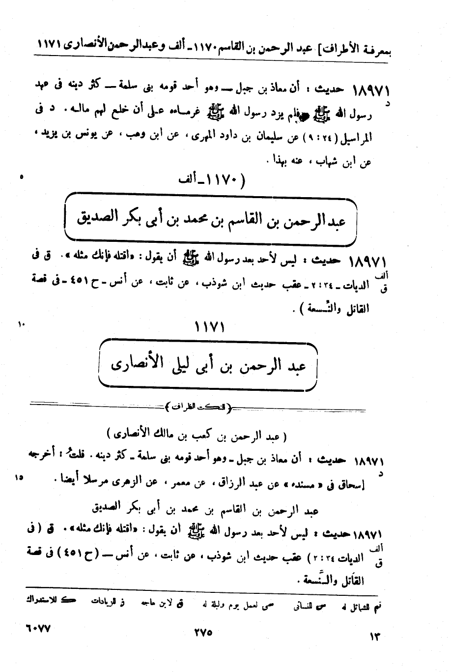 18971 -[د] حديث: أن معاذ بن جبل - وهو أحد قومه بني سلمة - كثر دينه في عهد رسول الله صَلَّى اللَّهُ عَلَيْهِ وَسَلَّمَ، فلم يزد رسول الله صَلَّى اللَّهُ عَلَيْهِ وَسَلَّمَ غرماءه على أن خلع لهم ماله. (د) في المراسيل (24: 9) عن سليمان بن داود المهري، عن ابن وهب، عن يونس بن يزيد، عن ابن شهاب، عنه بهذا.