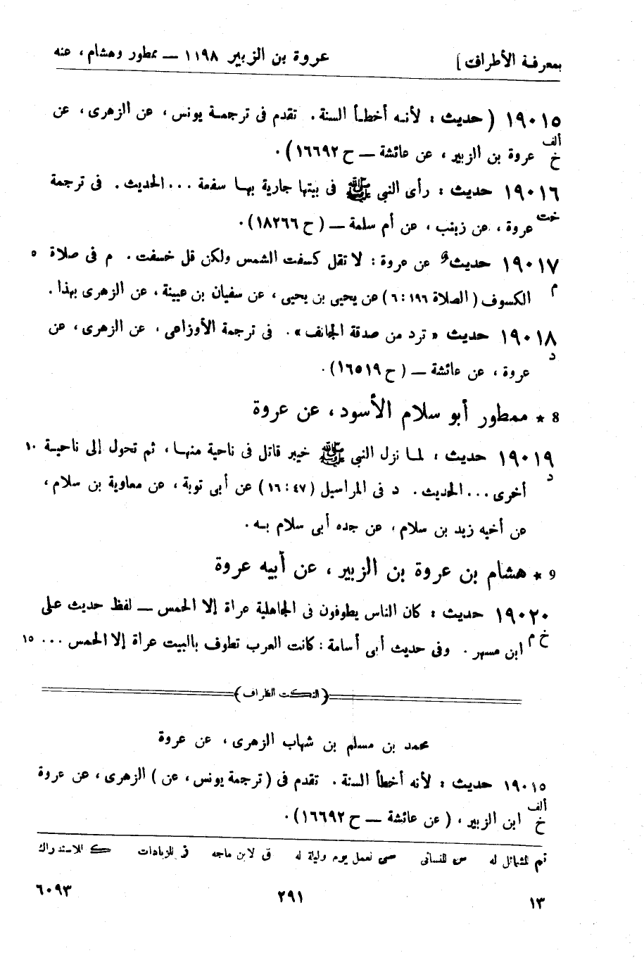 19018 - حديث ترد من صدقة الجانف. في ترجمة الأوزاعي، عن الزهري، عن عروة، عن عائشة - (ح 16519) .