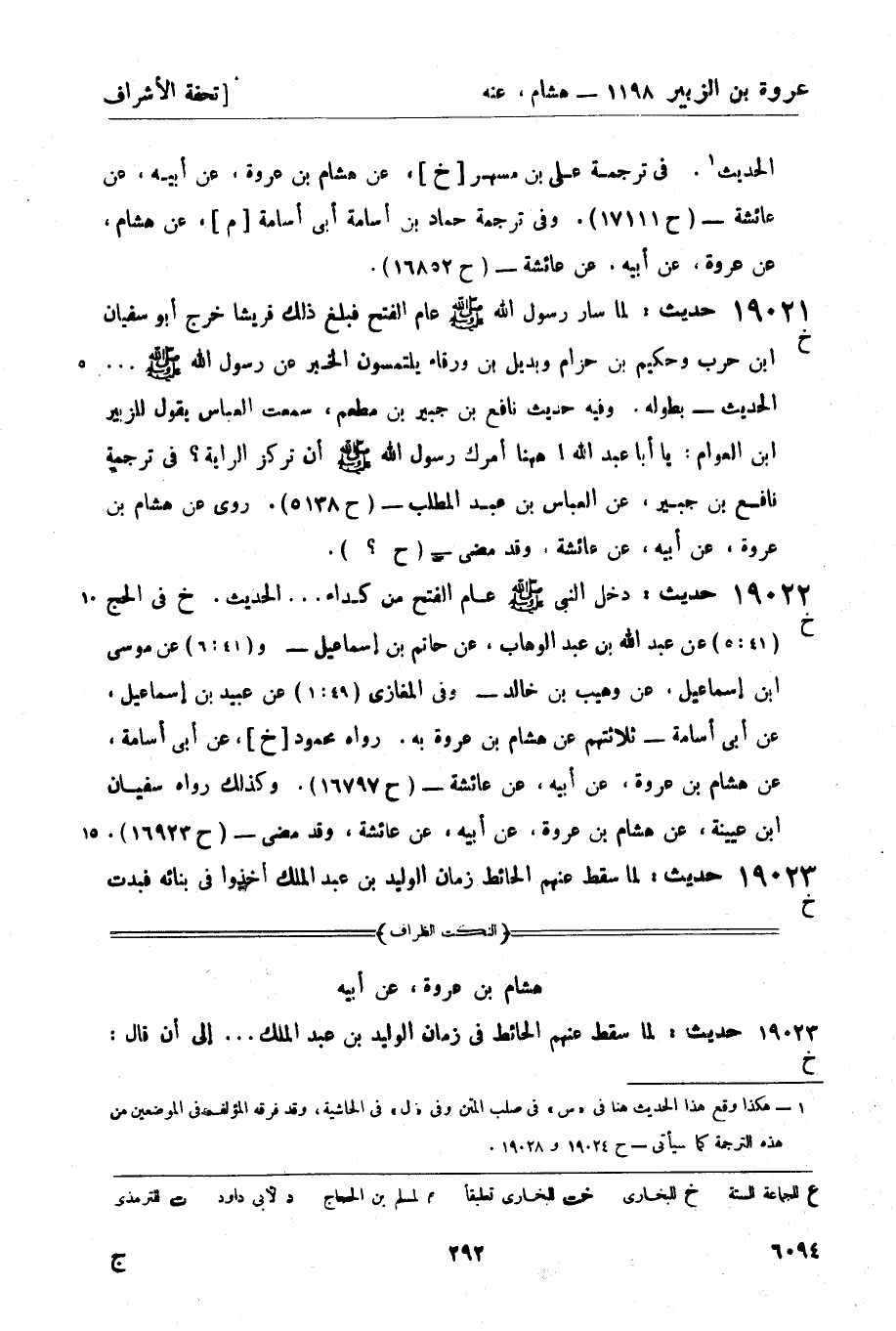 خ في الحج (41: 5) عن عبد الله بن عبد الوهاب، عن حاتم بن إسماعيل - و (41: 6) عن موسى بن إسماعيل، عن وهيب بن خالد - وفي المغازي (49: 1) عن عبيد بن إسماعيل، عن أبي أسامة - ثلاثتهم عن هشام بن عروة به. رواه محمود [خ] ، عن أبي أسامة، عن هشام بن عروة، عن أبيه، عن عائشة - (ح 16797) . وكذلك رواه سفيان بن عيينة، عن هشام بن عروة، عن أبيه، عن عائشة، وقد مضى - (ح 16923) .