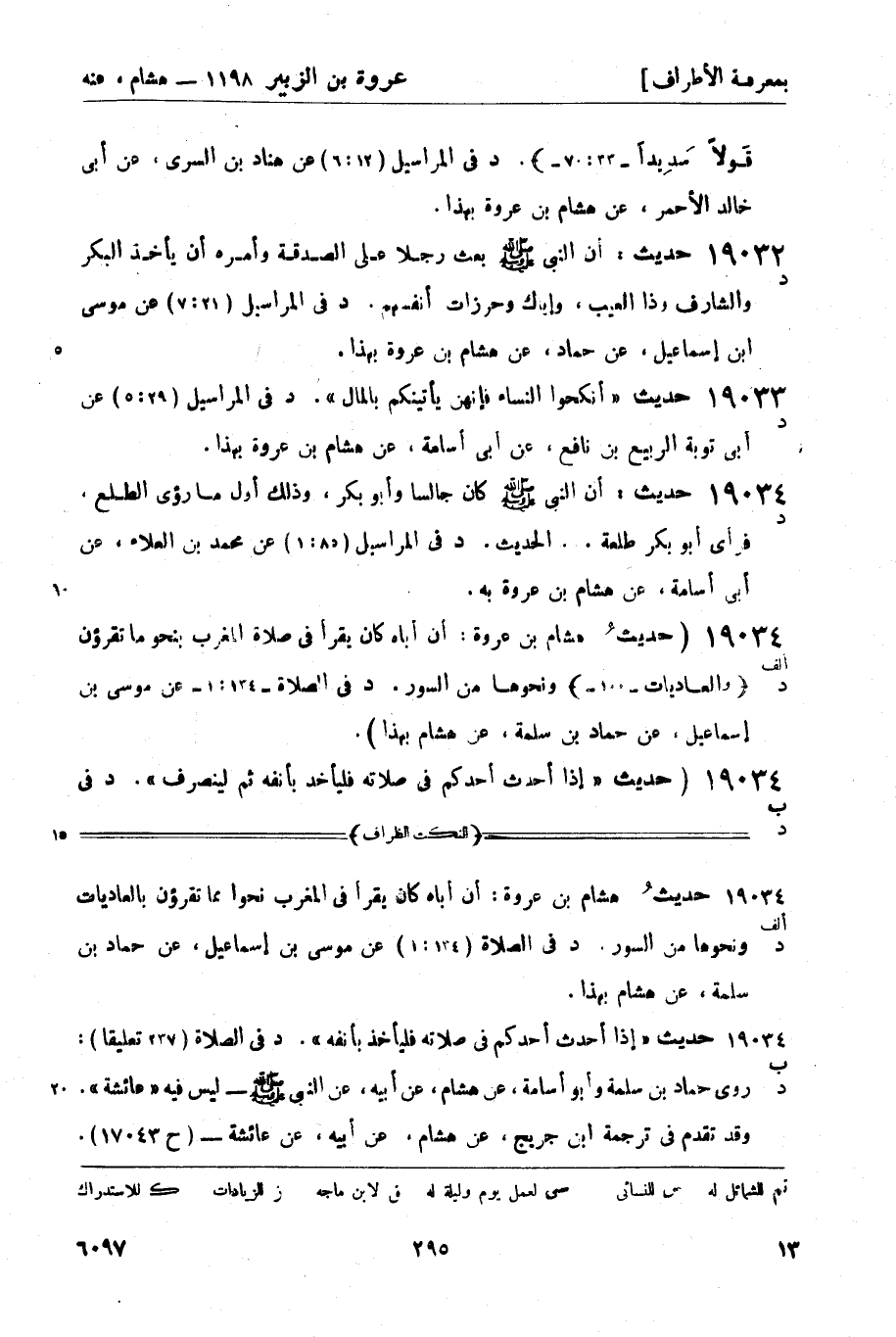 19032 -[د] حديث: أن النبي صَلَّى اللَّهُ عَلَيْهِ وَسَلَّمَ بعث رجلا على الصدقة وأمره أن يأخذ البكر والشارف وذا العيب، وإياك وحرزات أنفسهم. (د) في المراسيل (21: 7) عن موسى بن إسماعيل، عن حماد، عن هشام بن عروة بهذا.
