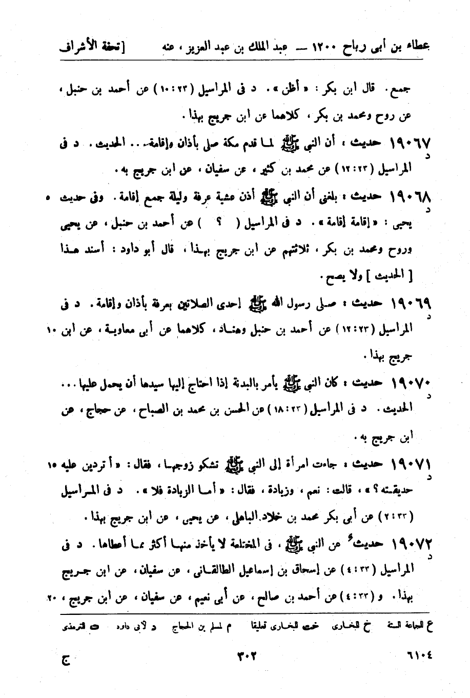 19068 -[د] حديث: بلغني أن النبي صَلَّى اللَّهُ عَلَيْهِ وَسَلَّمَ أذن عشية عرفة وليلة جمع إقامة. وفي حديث يحيى: إقامة إقامة. (د) في المراسيل (؟) عن أحمد بن حنبل، عن يحيى وروح ومحمد بن بكر، ثلاثتهم عن ابن جريج بهذا، قال أبو داود: أسند هذا [الحديث] ولا يصح.