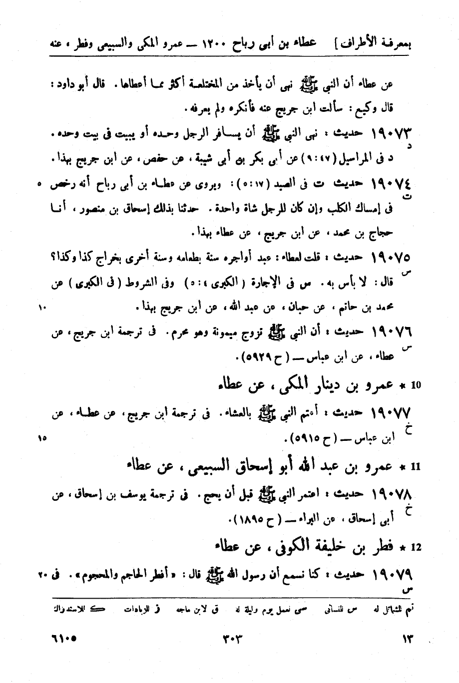 19075 -[س] حديث: قلت لعطاء: عبد أواجره سنة بطعامه وسنة أخرى بخراج كذا وكذا؟ قال: لا بأس به. (س) في الإجارة (الكبرى 4: 5) وفي الشروط (في الكبرى) عن محمد بن حاتم، عن حبان، عن عبد الله، عن ابن جريج بهذا.