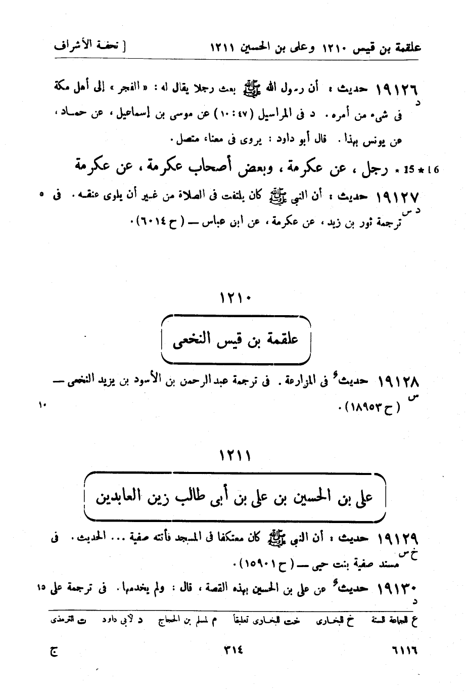 19130 - حديث عن علي بن الحسين بهذه القصة، قال: ولم يخدمها. في ترجمة علي -[315]- بن أعبد، عن علي - (لا، بل في ترجمة علي بن الحسين، عن علي - ح 10246) 1.