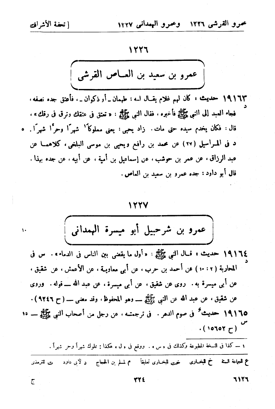 19163 -[د] حديث: كان لهم غلام يقال له: طهمان - أو ذكوان -، فأعتق جده نصفه، فجاء العبد إلى النبي صَلَّى اللَّهُ عَلَيْهِ وَسَلَّمَ فأخبره، فقال النبي صَلَّى اللَّهُ عَلَيْهِ وَسَلَّمَ: تعتق في عتقك وترق في رقك، قال: فكان يخدم سيده حتى مات. زاد يحيى: يعني مملوكا1 شهرا وحرا شهرا. (د) في المراسيل (27) عن محمد بن رافع ويحيى بن موسى البخلي، كلاهما عن عبد الرزاق، عن عمر بن حوشب، عن إسماعيل بن أمية، عن أبيه، عن جده بهذا. قال أبو داود: جده عمرو بن سعيد بن العاص.
