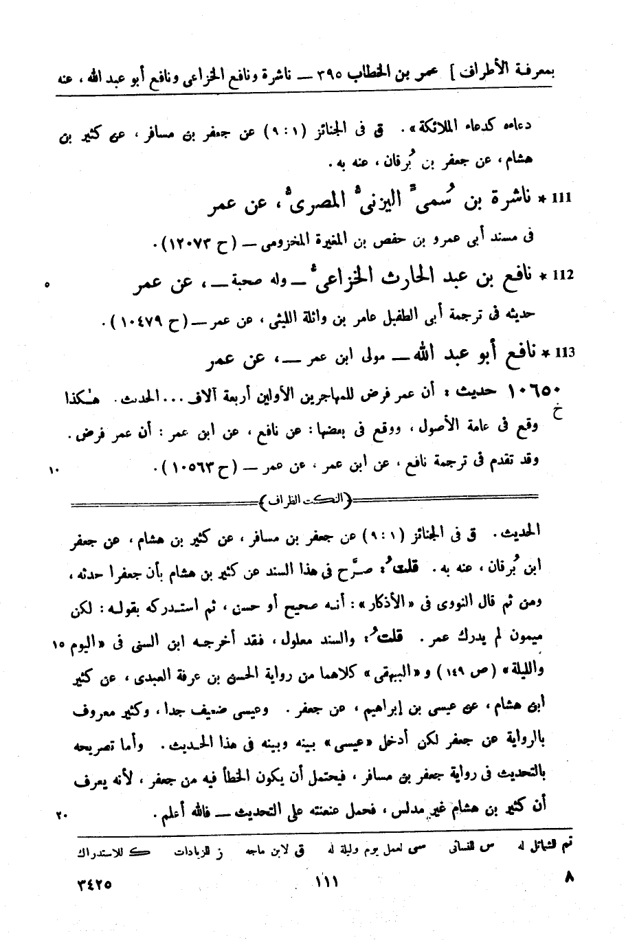 نافع بن عبد الحارث الخزاعيُّ - وله صحبة -، عن عمر حديثه في ترجمة أبي الطفيل عامر بن واثلة الليثي، عن عمر - (ح 10479) .