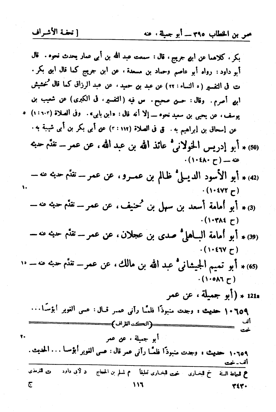 10659 - (ألف خت) حديث: وجدت منبوذاً فلمَّا رآني عمر قال: عسى الغوير أَبؤساً ... -[117]- الحديث. خ في الشهادات - في ترجمة الباب 16 تعليقاً -: وقال أبو جميلة ... فذكره) .