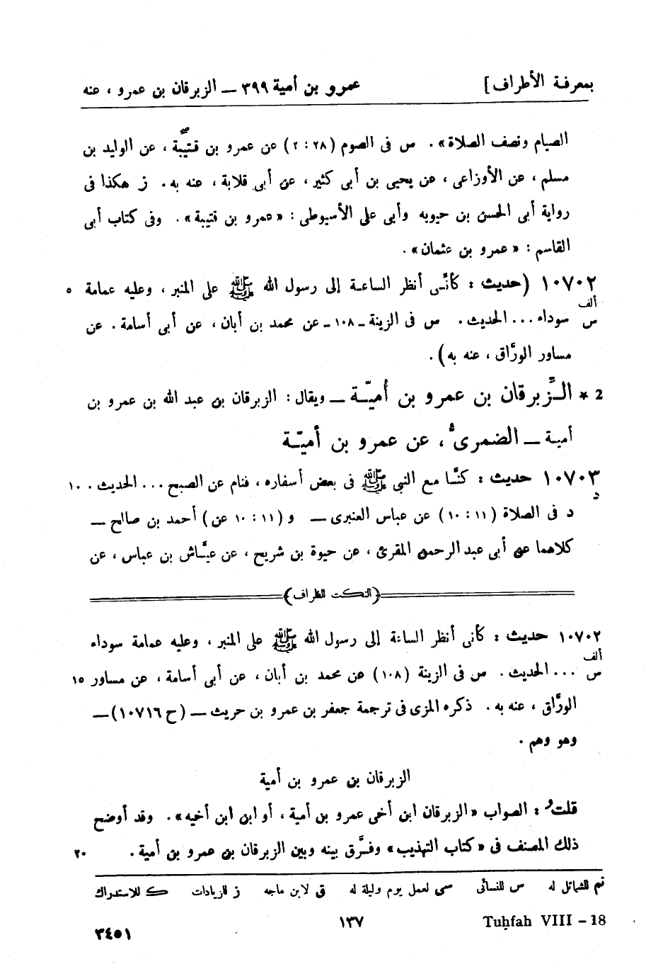 10702 - (ألف) (س) (حديث: كأنِّي أنظر الساعة إلى رسول الله صَلَّى اللَّهُ عَلَيْهِ وَسَلَّمَ على المنبر، وعليه عمامة سوداء ... الحديث. س في الزينة - 108 - عن محمد بن أبان، عن أبي أسامة، عن مساور الورَّاق , عنه به) .