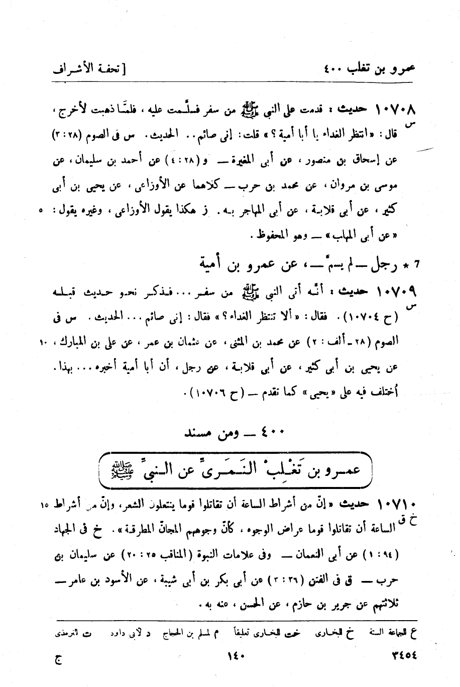 ومن مسند عمرو بن تَغْلِبْ النَمَريِّ عن النبي صَلَّى اللَّهُ عَلَيْهِ وَسَلَّمَ