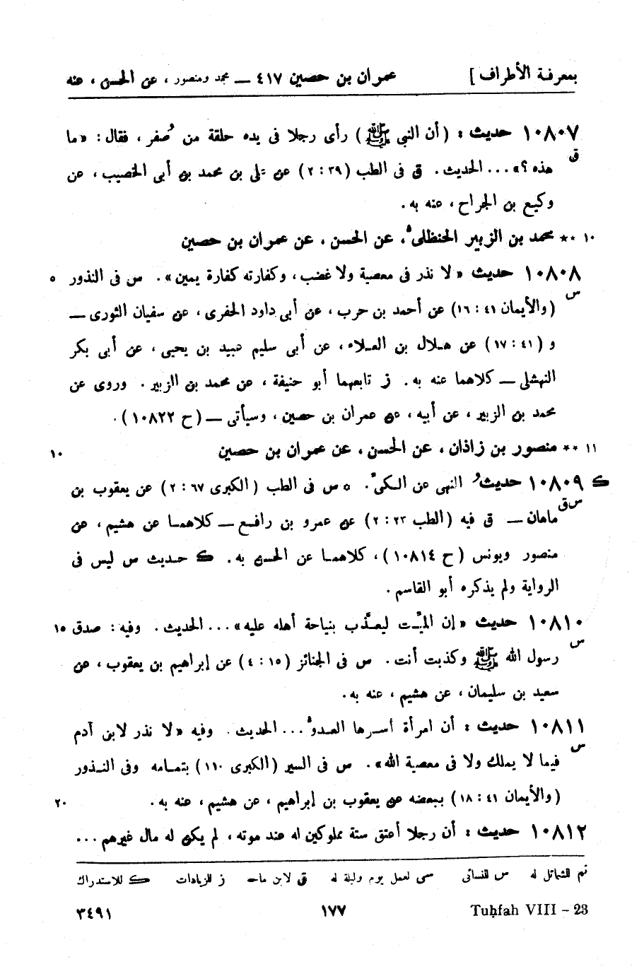 10809 -[س ق] حديثُ النهي عن الكيِّ. (ك) س في الطب (الكبرى 67: 2) عن يعقوب بن ماهان - ق فيه (الطب 23: 2) عن عمرو بن رافع - كلاهما عن هشيم، عن منصور ويونس (ح 10814) ، كلاهما عن الحسن به. ك حديث س ليس في الرواية ولم يذكره أبو القاسم.