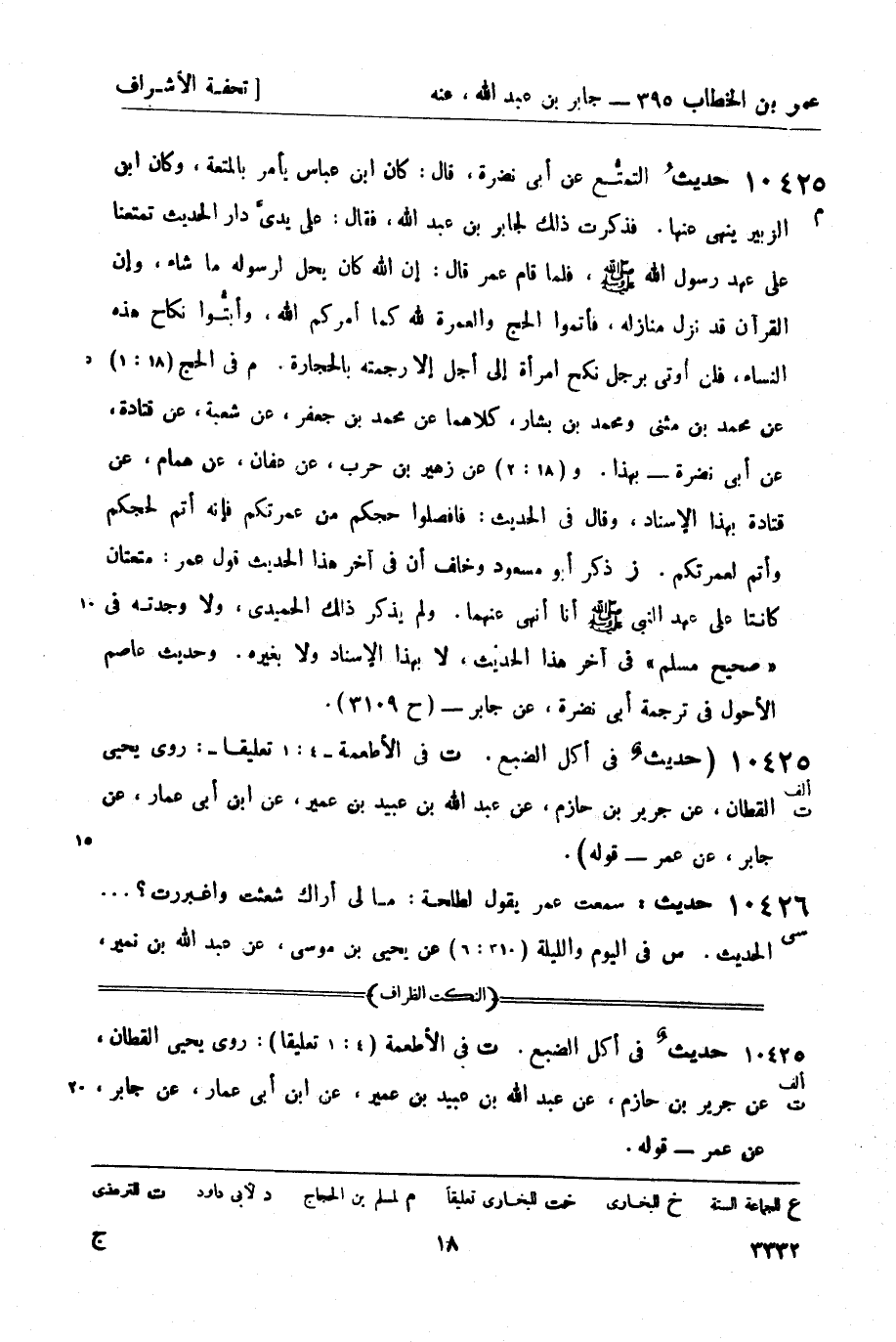 10425 - (ألف ت) (حديثٌ في أكل الضبع. (ت) في الأطعمة - 4: 1 تعليقاً -: روى يحيى القطان، عن جرير بن حازم، عن عبد الله بن عبيد بن عمير، عن ابن أبي عمار، عن جابر، عن عمر - قوله) .