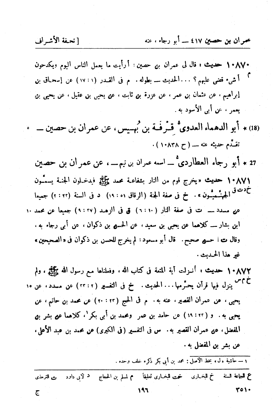 أبو رجاء العطارديُّ - اسمه عمران بن تيم -، عن عمران بن حصين