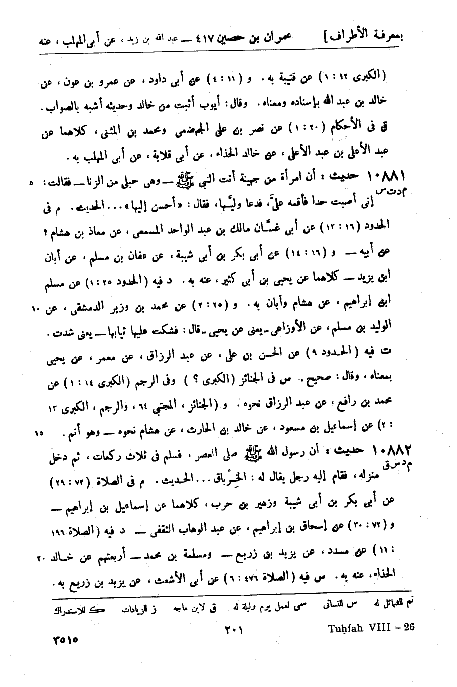 10882 -[م د س ق] حديث: أن رسول الله صَلَّى اللَّهُ عَلَيْهِ وَسَلَّمَ صلى العصر، فسلم في ثلاث ركعات، ثم دخل منزله، فقام إليه رجل يقال له: الخِرْباق ... الحديث. م في الصلاة (72: 29) عن أبي بكر بن أبي شيبة وزهير بن حرب، كلاهما عن إسماعيل بن إبراهيم - و (72: 30) عن إسحاق بن إبراهيم، عن عبد الوهاب الثقفي - د فيه (الصلاة 196: 11) عن مسدد، عن يزيد بن زريع - ومسلمة بن محمد - أربعتهم عن خالد الحذاء، عنه به. س فيه (الصلاة 476: 6) عن أبي الأشعث، عن يزيد بن زريع به. -[202]- و (529: 2) عن يحيى بن حبيب بن عربي، عن حماد بن زيد، عن خالد نحوه. ق فيه (الصلاة 173: 3) عن محمد بن المثنى وأحمد بن ثابت الجحدري، كلاهما عن عبد الوهاب الثقفي به.