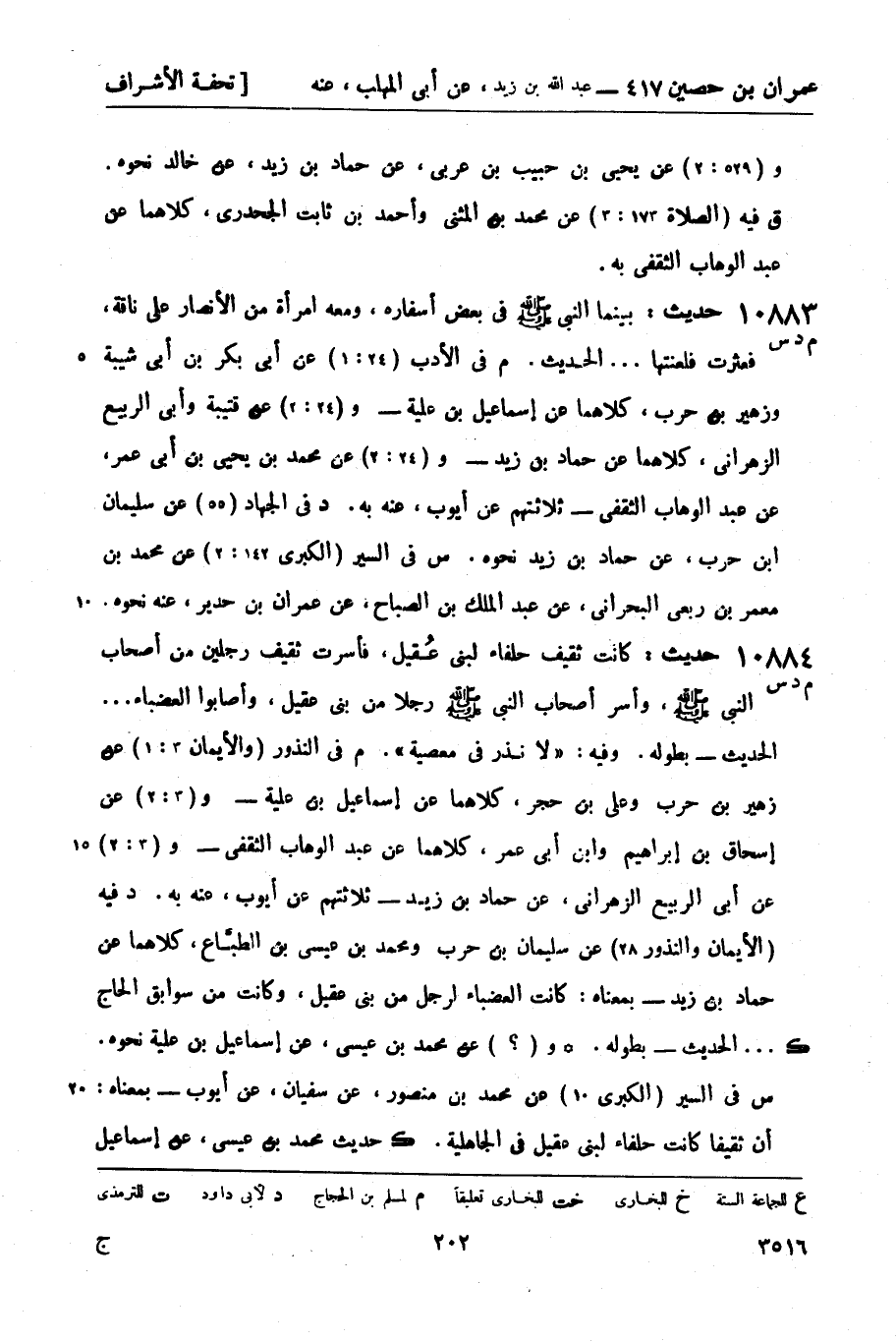 10884 -[م د س] حديث: كانت ثقيف حلفاء لبني عُقيل، فأسرت ثقيف رجلين من أصحاب النبيّ صَلَّى اللَّهُ عَلَيْهِ وَسَلَّمَ، وأسر أصحاب النبيّ صَلَّى اللَّهُ عَلَيْهِ وَسَلَّمَ رجلاً من بني عقيل، وأصابوا العضباء ... الحديث - بطوله. وفيه: لا نذر في معصية. م في النذور (والأيمان 3: 1) عن زهير بن حرب وعلي بن حجر، كلاهما عن إسماعيل ابن علية - و (3: 2) عن إسحاق بن إبراهيم وابن أبي عمر، كلاهما عن عبد الوهاب الثقفي - و (3: 2) عن أبي الربيع الزهراني، عن حماد بن زيد - ثلاثتهم عن أيوب , عنه به. د فيه (الأيمان والنذور 28) عن سليمان بن حرب ومحمد بن عيسى بن الطبَّاع، كلاهما عن حماد بن زيد - بمعناه: كانت العضباء لرجل من بني عقيل، وكانت من سوابق الحاج ... الحديث - بطوله. (ك) و (؟) عن محمد بن عيسى، عن إسماعيل ابن علية نحوه، س في السير (الكبرى 10) عن محمد بن منصور، عن سفيان، عن أيوب - بمعناه: أن ثقيفاً كانت حلفاء لبني عقيل في الجاهلية. ك حديث محمد بن عيسى، عن إسماعيل -[203]- ابن علية في رواية أبي الحسن بن العبد، ولم يذكره أبو القاسم.