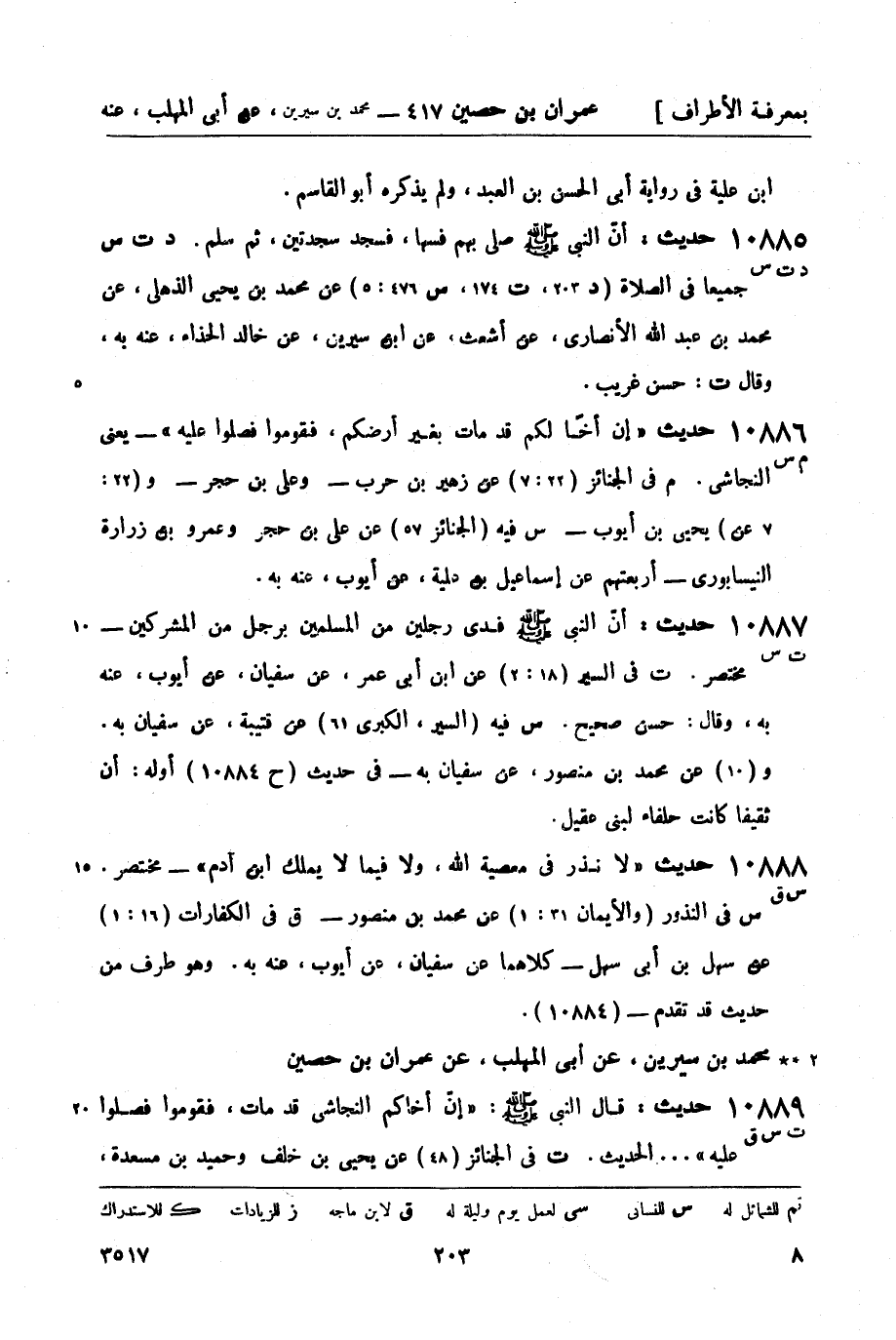 10886 -[م س] حديث إن أخاً لكم قد مات بغير أرضكم، فقوموا فصلوا عليه - يعني النجاشي. م في الجنائز (22: 7) عن زهير بن حرب - وعلي بن حجر - و (22: 7 عن) يحيى بن أيوب - س في (الجنائز 57) عن علي بن حجر وعمرو بن زرارة النيسابوري - أربعتهم عن إسماعيل ابن علية، عن أيوب , عنه به.