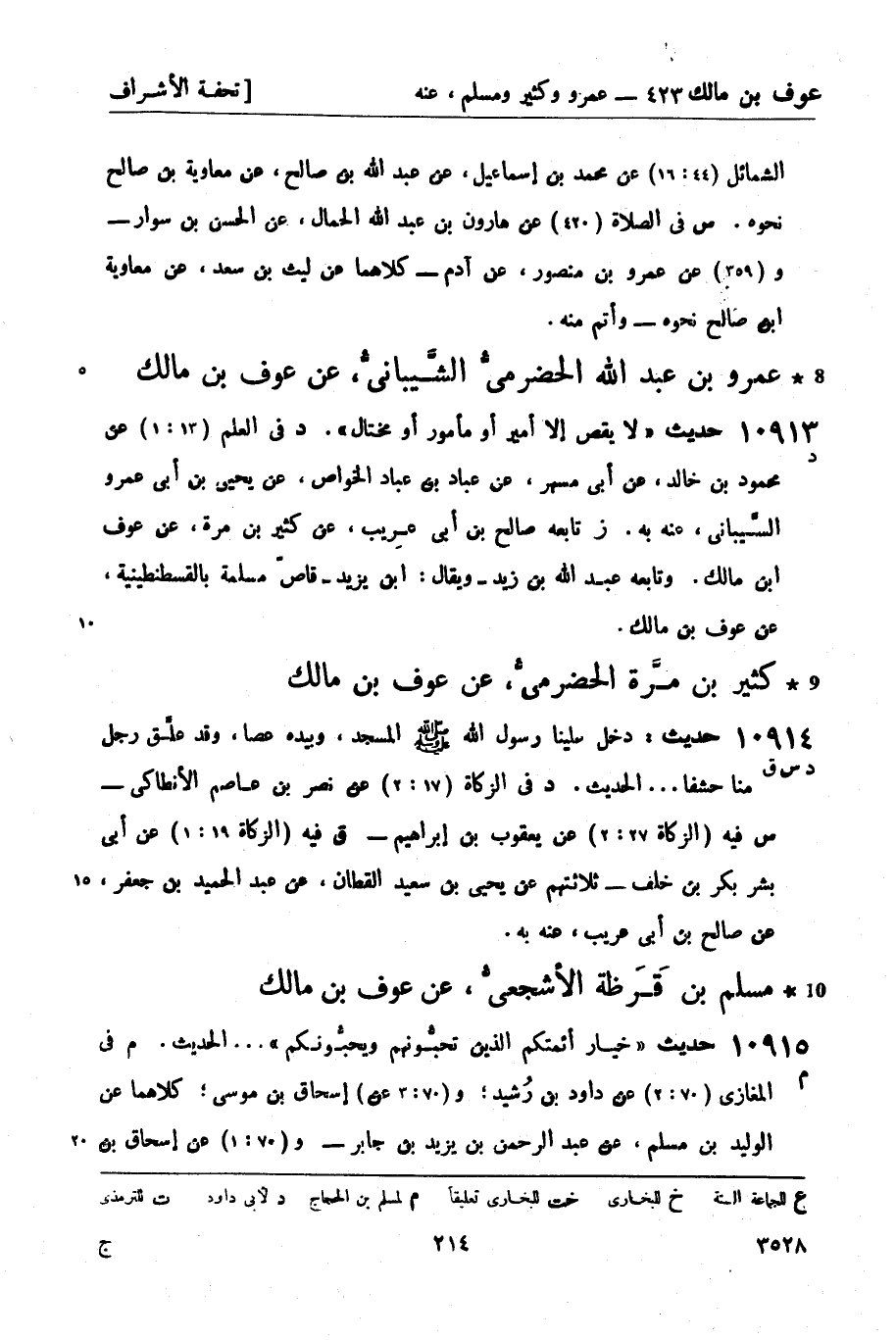 10915 -[م] حديث خيار أئمتكم الذين تحبُّونهم ويحبُّونكم ... الحديث. م في المغازي (70: 2) عن داود بن رُشيد؛ و (70: 3 عن) إسحاق بن موسى؛ كلاهما عن الوليد بن مسلم، عن عبد الرحمن بن يزيد بن جابر - و (70: 1) عن إسحاق بن -[215]- إبراهيم، عن عيسى بن يونس، عن الأوزاعي، عن يزيد بن يزيد بن جابر - كلاهما عن رُزيق بن حيَّان , عنه به. قال م (70: 3 تعليقاً) : ورواه معاوية بن صالح، عن ربيعة بن يزيد، عن مسلم بن قرظة، عن عوف بن مالك.