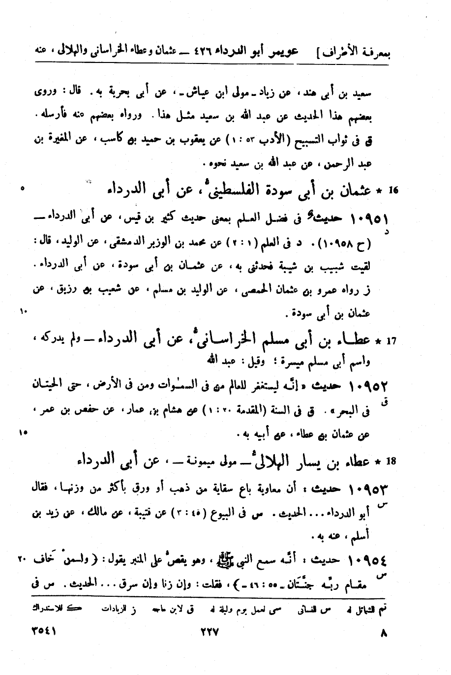 10951 -[د] حديثٌ في فضل العلم بمعنى حديث كثير بن قيس، عن أبي الدرداء - (ح 10958) . د في العلم (1: 2) عن محمد بن الوزير الدمشقي، عن الوليد، قال: لقيت شبيب بن شيبة فحدثني به، عن عثمان بن أبي سودة، عن أبي الدرداء. ز رواه عمرو بن عثمان الحمصي، عن الوليد بن مسلم، عن شعيب بن رزيق، عن عثمان بن أبي سودة.