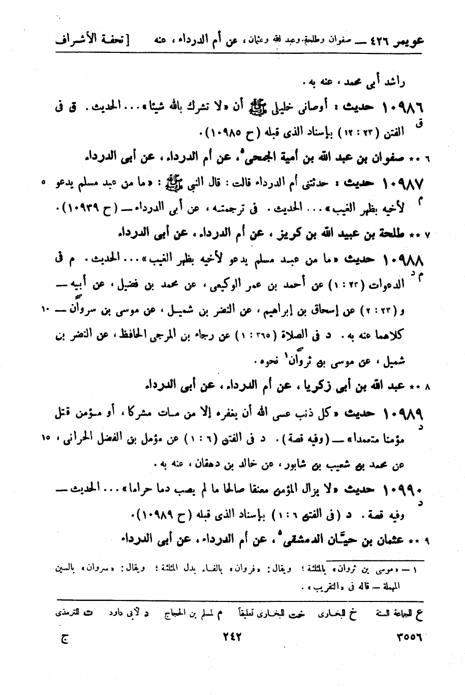 طلحة بن عبيد الله بن كريز، عن أُم الدرداء، عن أبي الدرداء