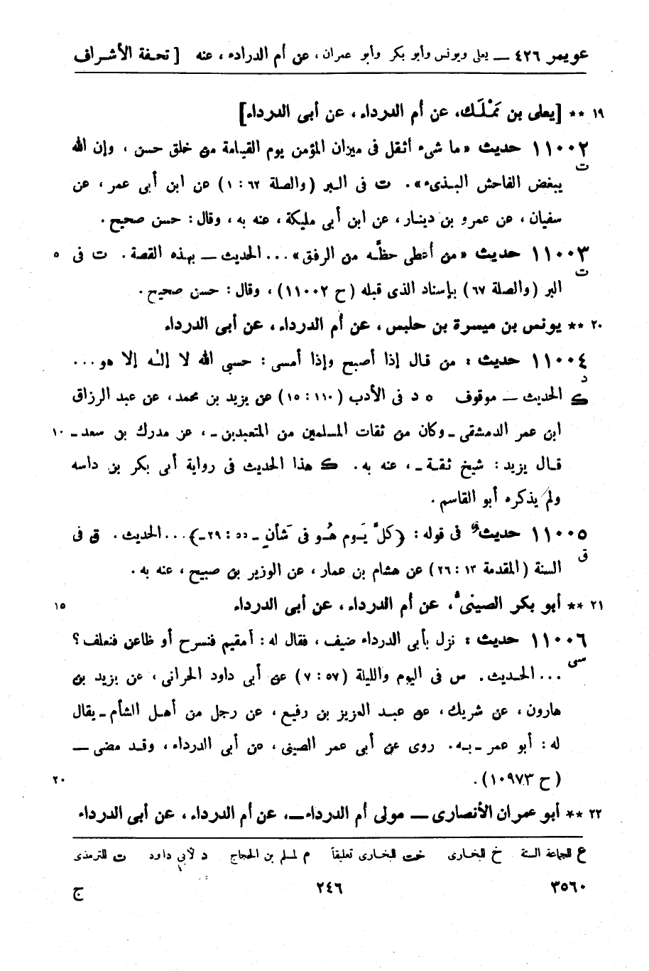 11006 -[سي] حديث: نزل بأبي الدرداء ضيف، فقال له: أمقيم فنسرح أو ظاعن فنعلف؟.... الحديث. س في اليوم والليلة (57: 7) عن أبي داود الحراني، عن يزيد بن هارون، عن شريك، عن عبد العزيز بن رفيع، عن رجل من أهل الشأم - يقال له: أبو عمر - به. روى عن أبي عمر الصيني، عن أبي الدرداء، وقد مضى - (ح 10973) .