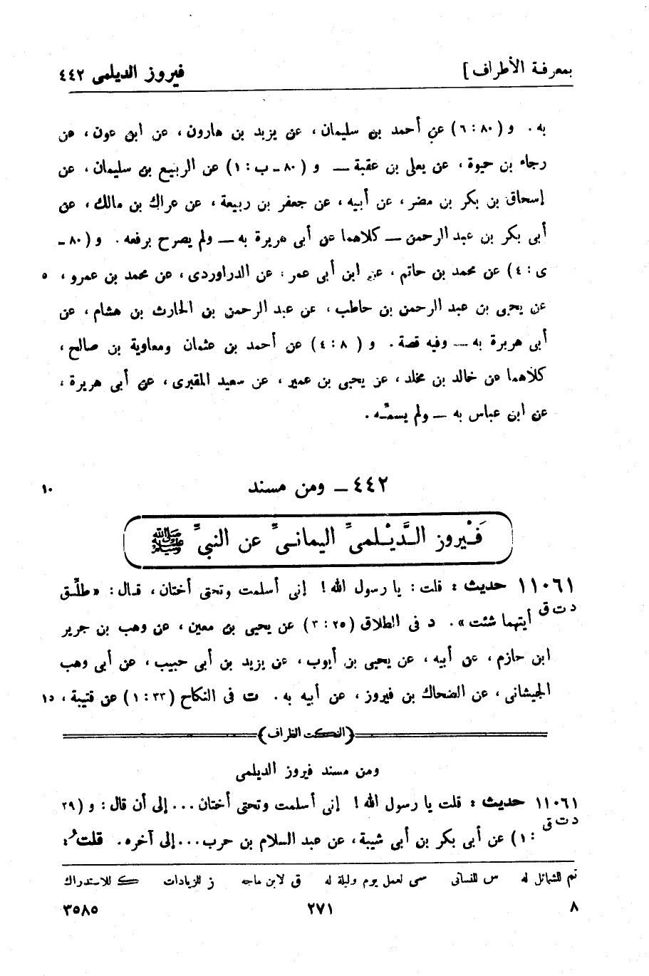 ومن مسند فَيْروز الدَّيْلميِّ اليمانيِّ عن النبي صَلَّى اللَّهُ عَلَيْهِ وَسَلَّمَ