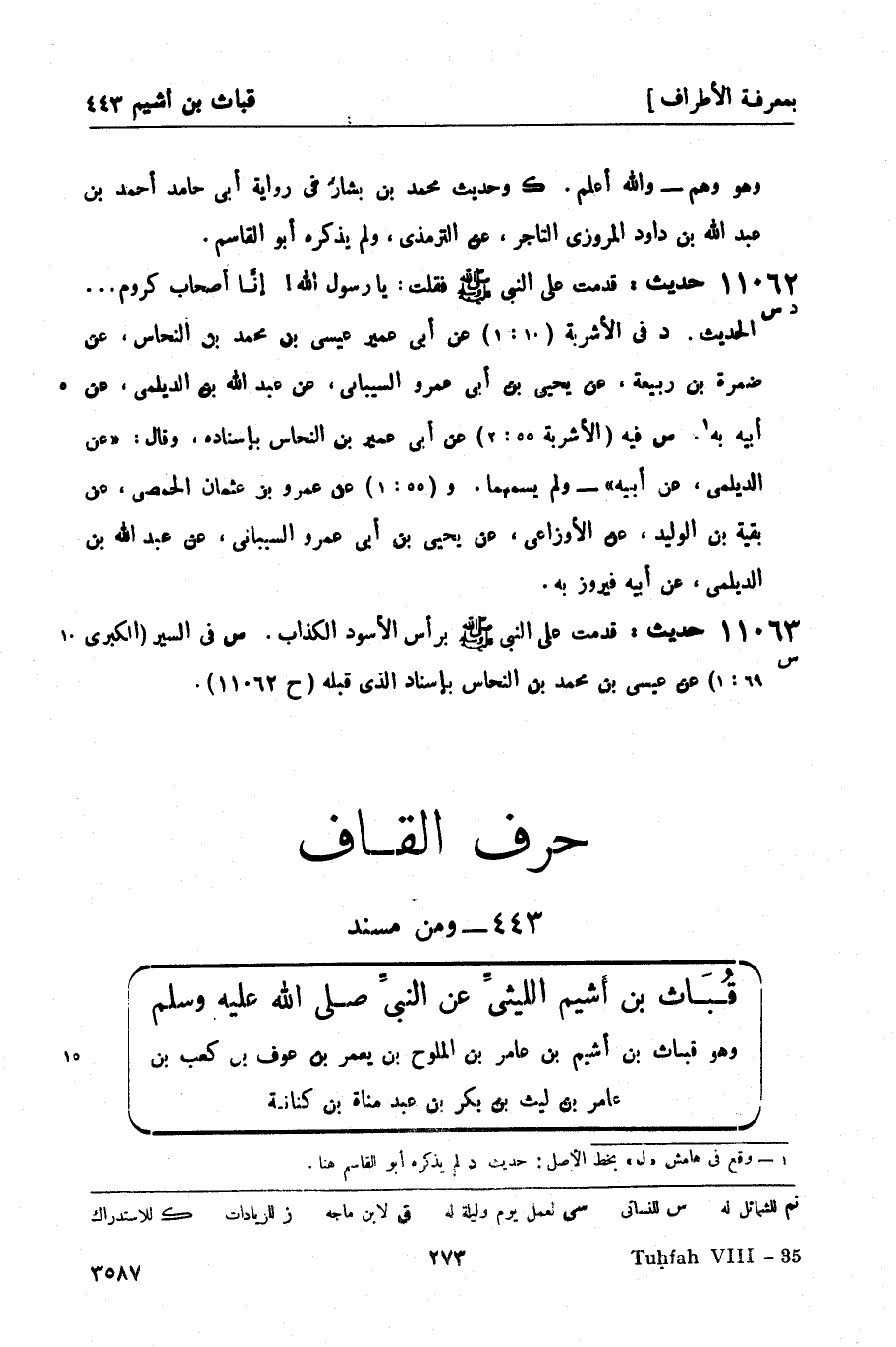 ومن مسند قُبَاث بن أَشيم الليثيِّ عن النبي صَلَّى اللَّهُ عَلَيْهِ وَسَلَّمَ وهو قباث بن أشيم بن عامر بن الملوح بن يعمر بن عوف بن كعب بن عامر بن ليث بن بكر بن عبد مناة بن كنانة