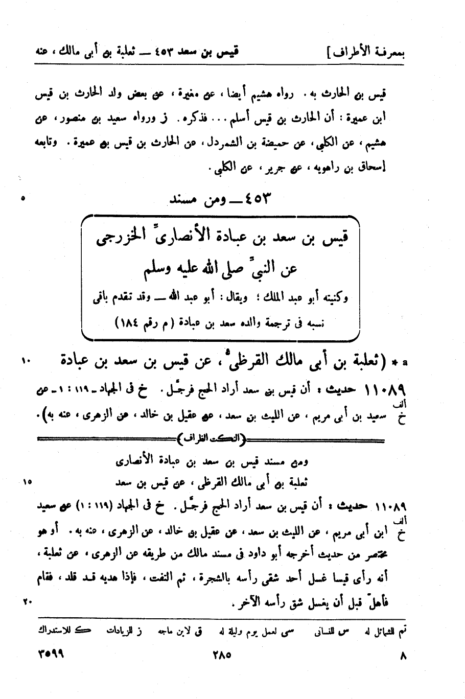 ومن مسند قيس بن سعد بن عبادة الأنصاريِّ الخزرجي عن النبي صَلَّى اللَّهُ عَلَيْهِ وَسَلَّمَ وكنيته أبو عبد الملك؛ ويقال: أبو عبد الله - وقد تقدم باقي نسبه في ترجمة والده سعد بن عبادة (م رقم 184)