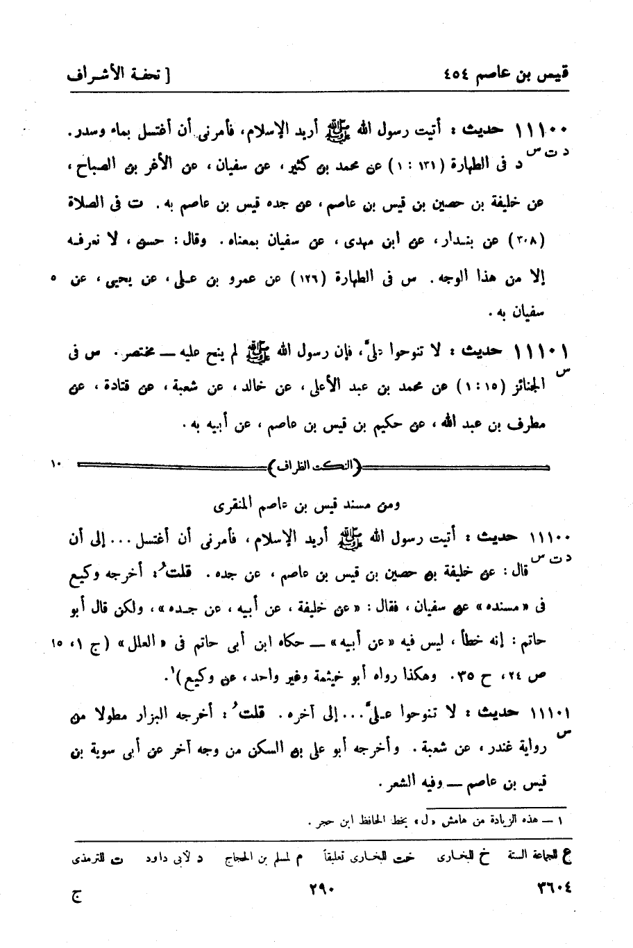 11100 -[د ت س] حديث: أتيت رسول الله صَلَّى اللَّهُ عَلَيْهِ وَسَلَّمَ أريد الإسلام فأمرني أن أغتسل بماء وسدر. د في الطهارة (131: 1) عن محمد بن كثير، عن سفيان، عن الأغر بن الصباح، عن خليفة بن حصين بن قيس بن عاصم، عن جده قيس بن عاصم به. ت في الصلاة (308) عن بندار، عن ابن مهدي، عن سفيان بمعناه. وقال: حسن، لا نعرفه إلا من هذا الوجه. س في الطهارة (126) عن عمرو بن علي، عن يحيى، عن سفيان به.