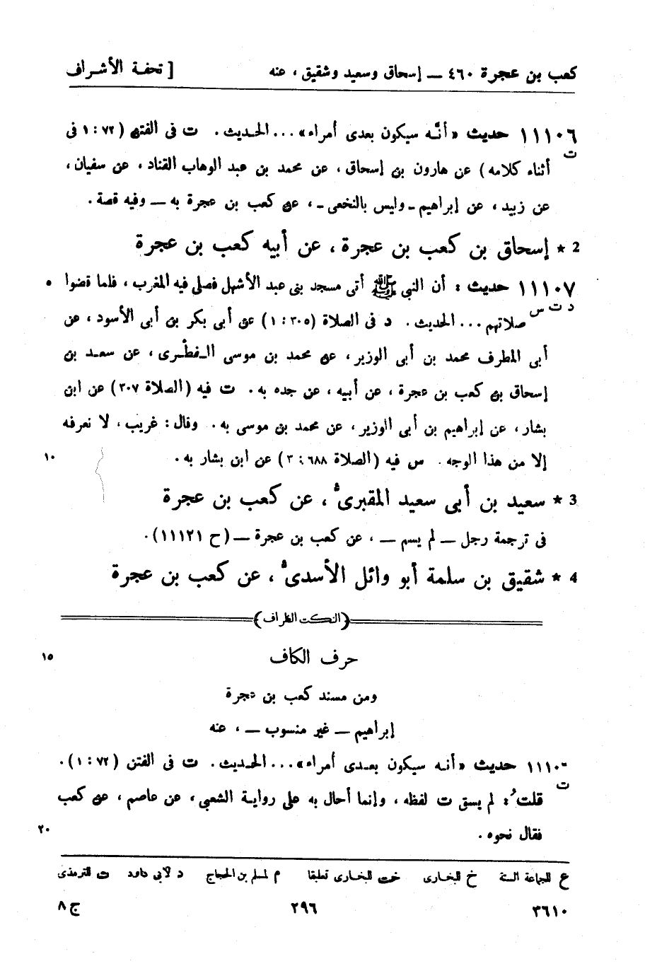 11106 -[ت] حديث أنَّه سيكون بعدي أُمراء ... الحديث. ت في الفتن (72: 1 في أثناء كلامه) عن هارون بن إسحاق، عن محمد بن عبد الوهاب القناد، عن سفيان، عن زبيد، عن إبراهيم - وليس بالنخعي -، عن كعب بن عجرة به - وفيه قصة.