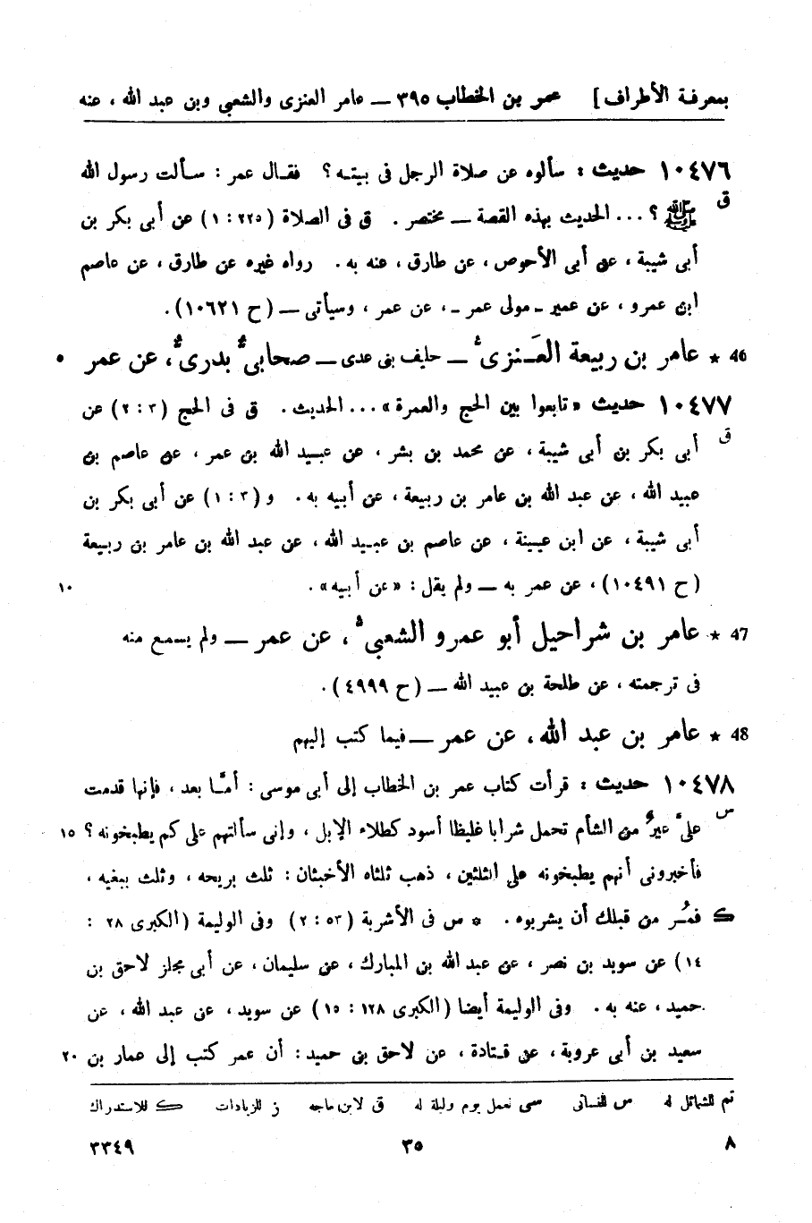 عامر بن شراحيل أبو عمرو الشعبيُّ، عن عمر - ولم يسمع منه في ترجمته عن طلحة بن عبيد الله - (ح 4999)