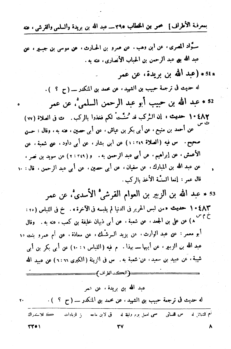 a 51 عبد الله بن بريدة، عن عمر له حديث في ترجمة حبيب بن الشهيد، عن محمد بن المنكدر - (ح؟) .