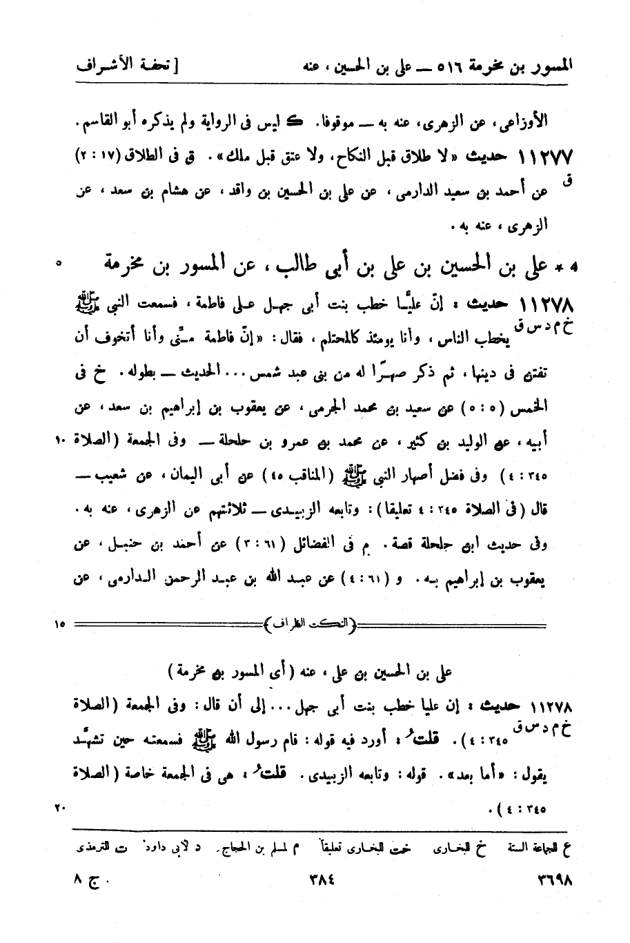 علي بن الحسين بن علي بن أبي طالب، عن المسور بن مخرمة