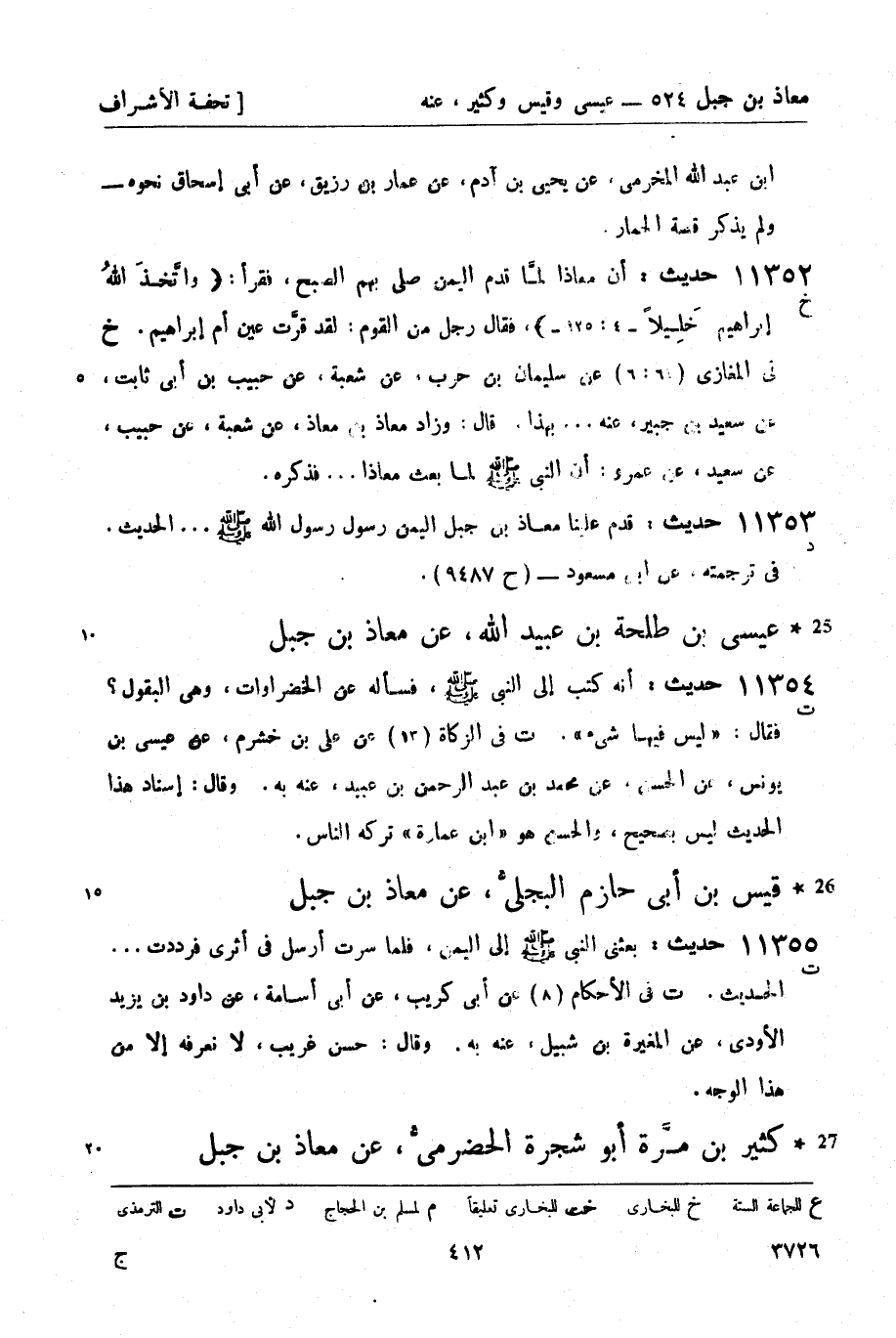 11353 -[د] حديث: قدم علينا معاذ بن جبل اليمن رسول الله صَلَّى اللَّهُ عَلَيْهِ وَسَلَّمَ ... الحديث. في ترجمته عن ابن مسعود - (ح 9487) .